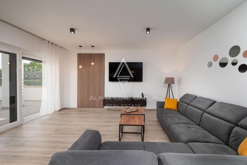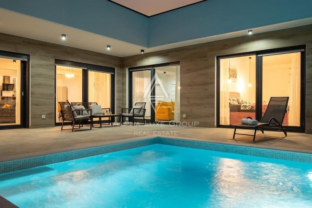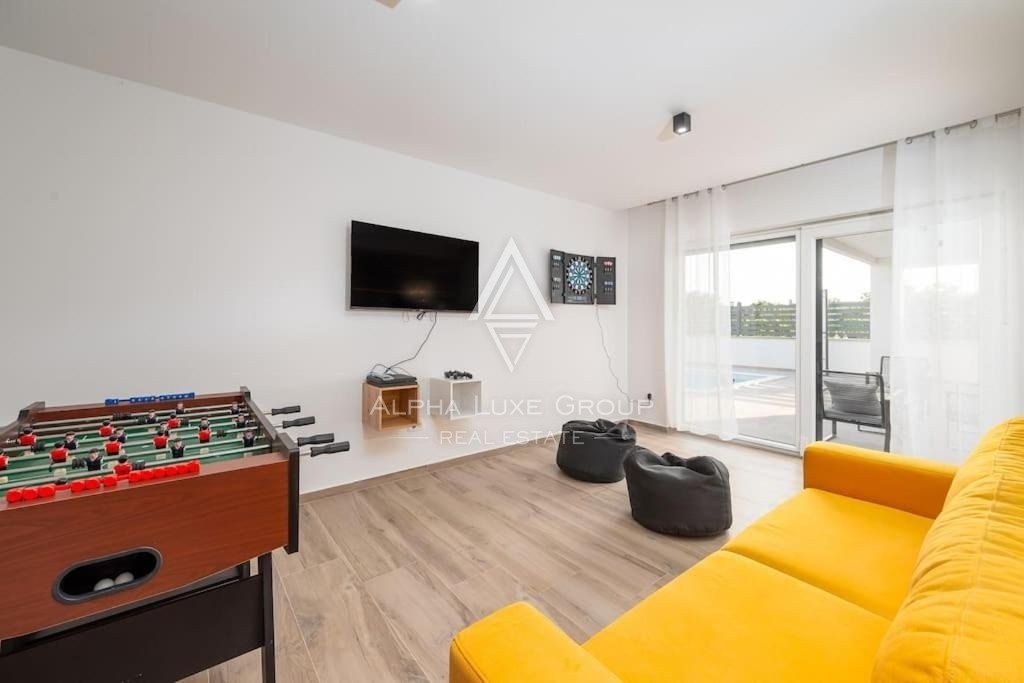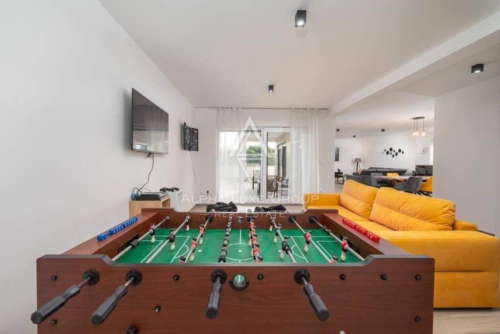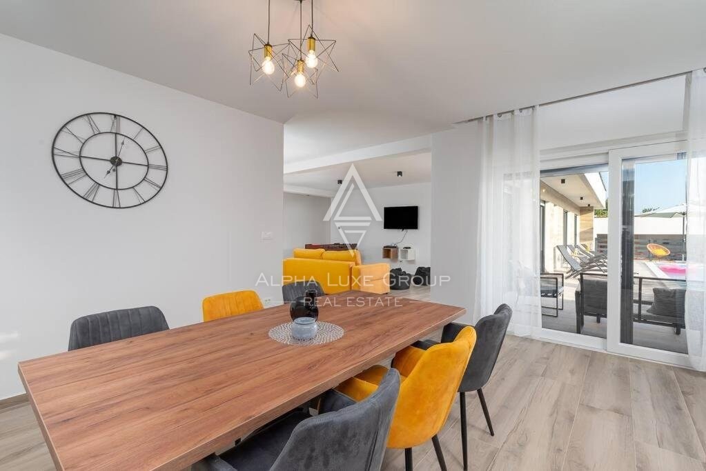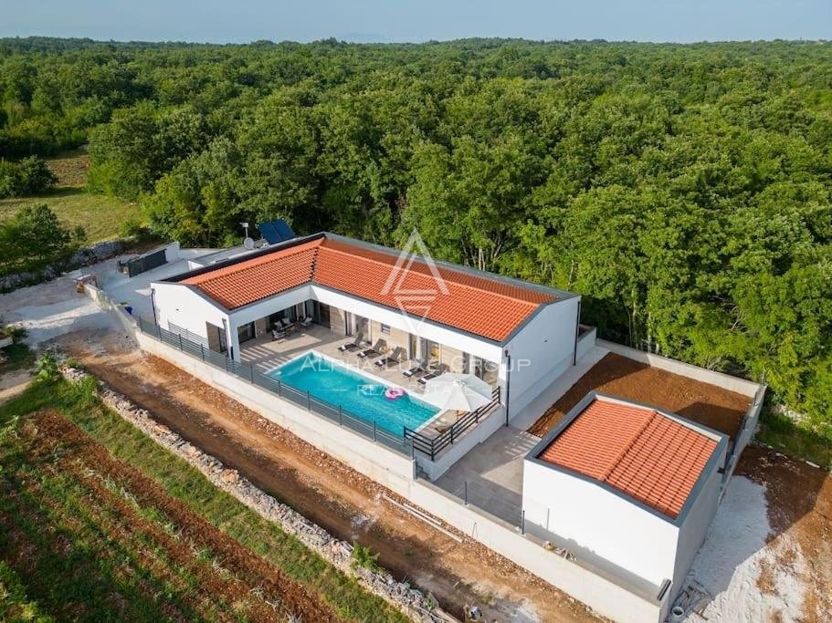Discover this sophisticated villa in the peaceful locale of Juršići, nestled within the verdant landscapes of Svetvinčenat, Istria. Boasting 220 m² of modern living space, this single-story property integrates elegance with functional design, making it an exceptional choice for discerning buyers.
