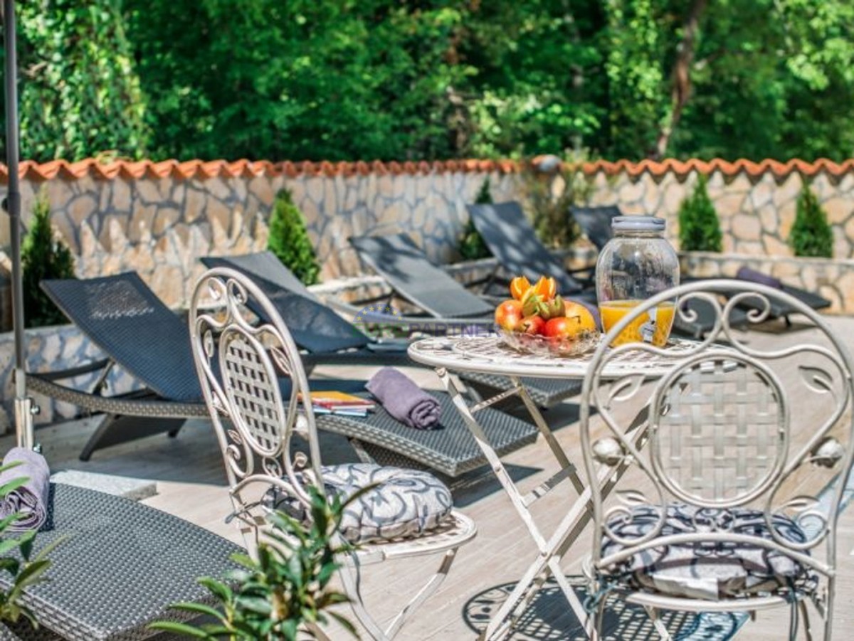 In the front part of the garden, in front of the house, there is a spacious covered terrace of 28 m2 that provides refreshment and shade in hot summer periods. There is a large outdoor grill in front of it.
