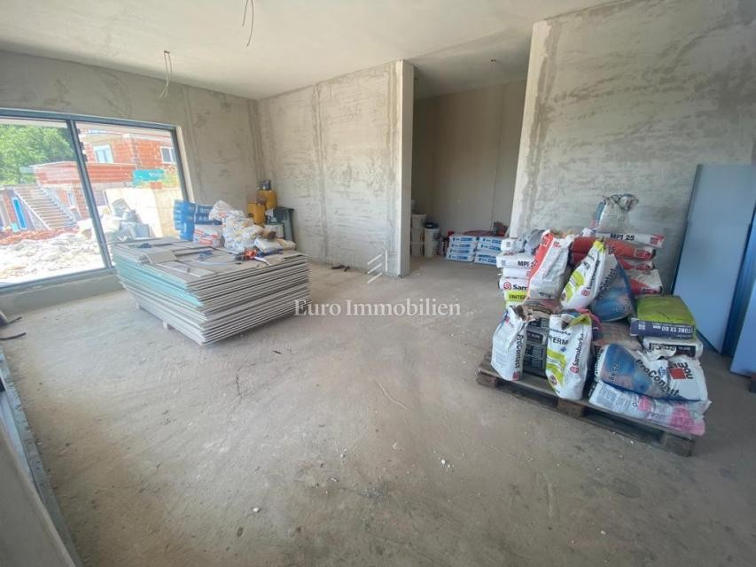 A new modern villa for sale with a swimming pool and a fantastic view of the sea in the Drenje settlement under construction.