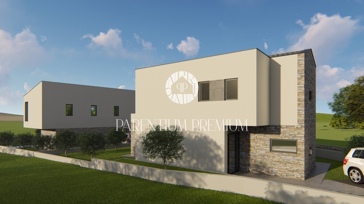 On the ground floor there is an entrance hall, a toilet with a laundry room, a kitchen with a dining room and a large living room with an open space concept with access to a covered terrace with summer kitchen, a sun deck and a 21m2 swimming pool.