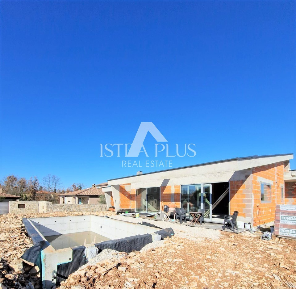 A beautiful project of a single-storey villa with a summer kitchen and a swimming pool located in a small village in the vicinity of Svetvinčent, 13 km from the nearest beaches and coast.