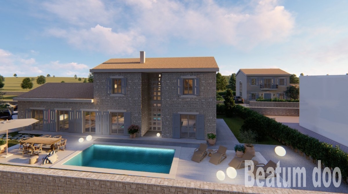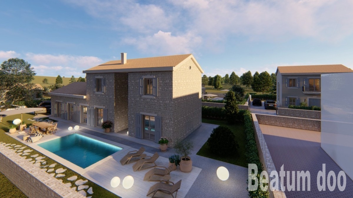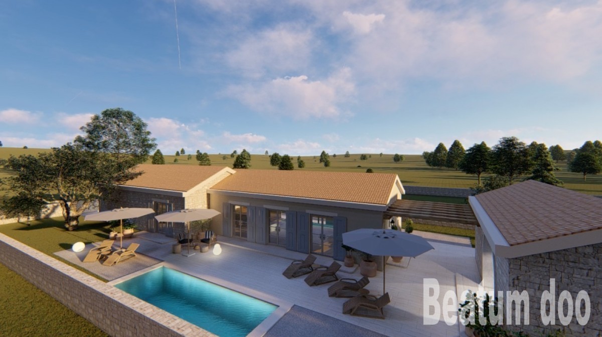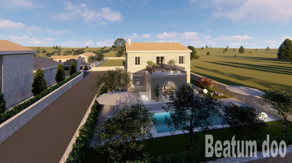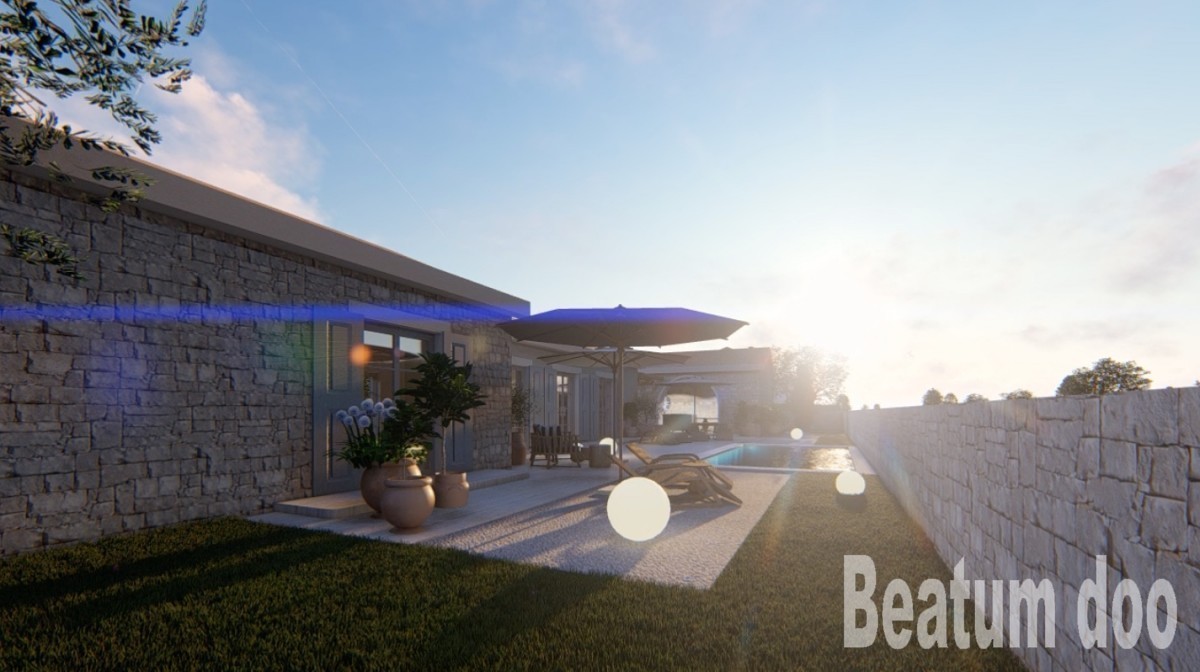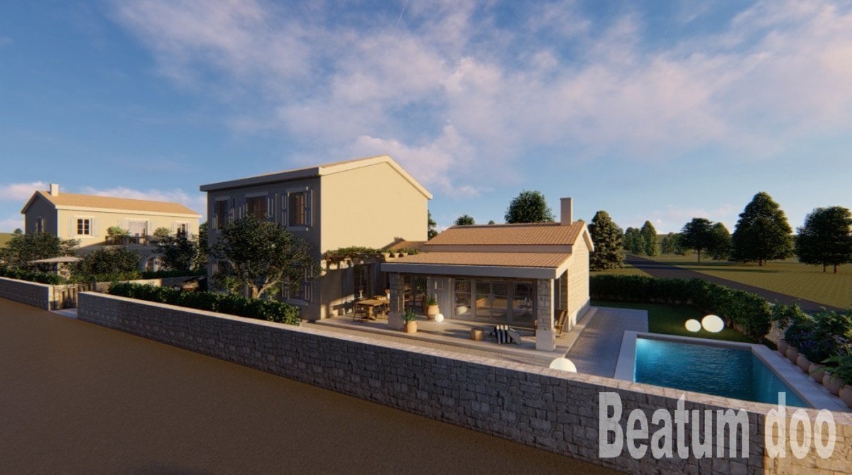 Four bedrooms, four bathrooms, kitchen + dining room, living room, covered terrace