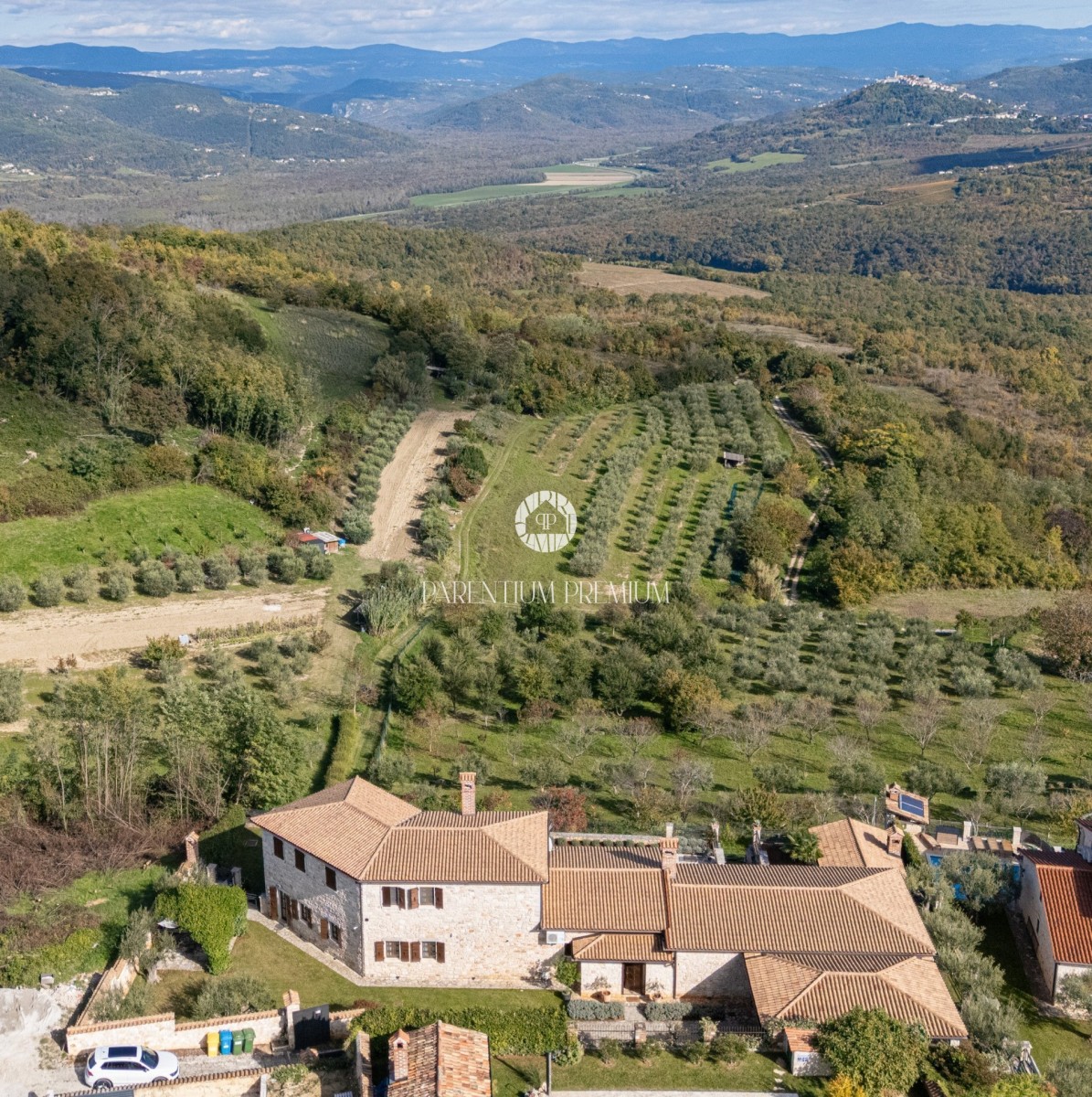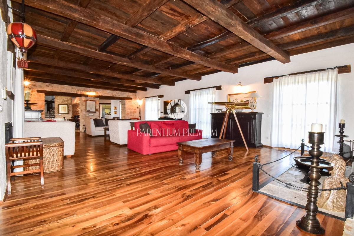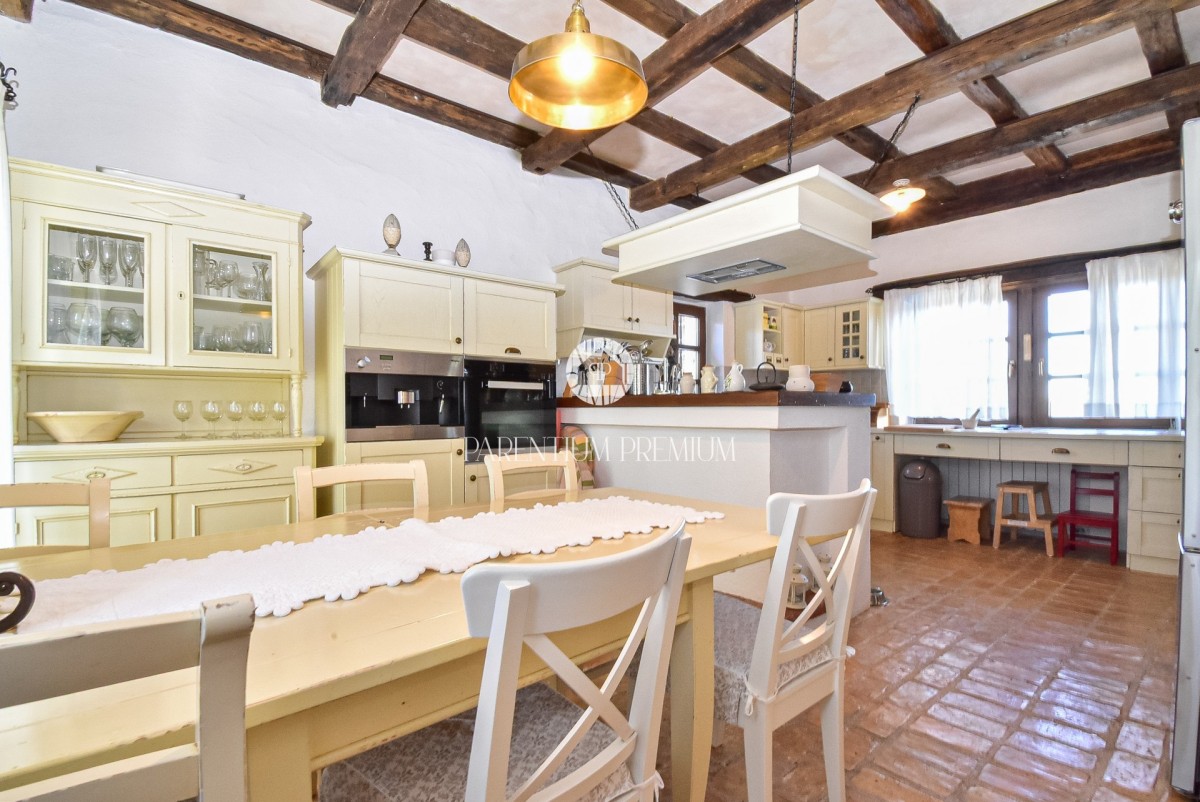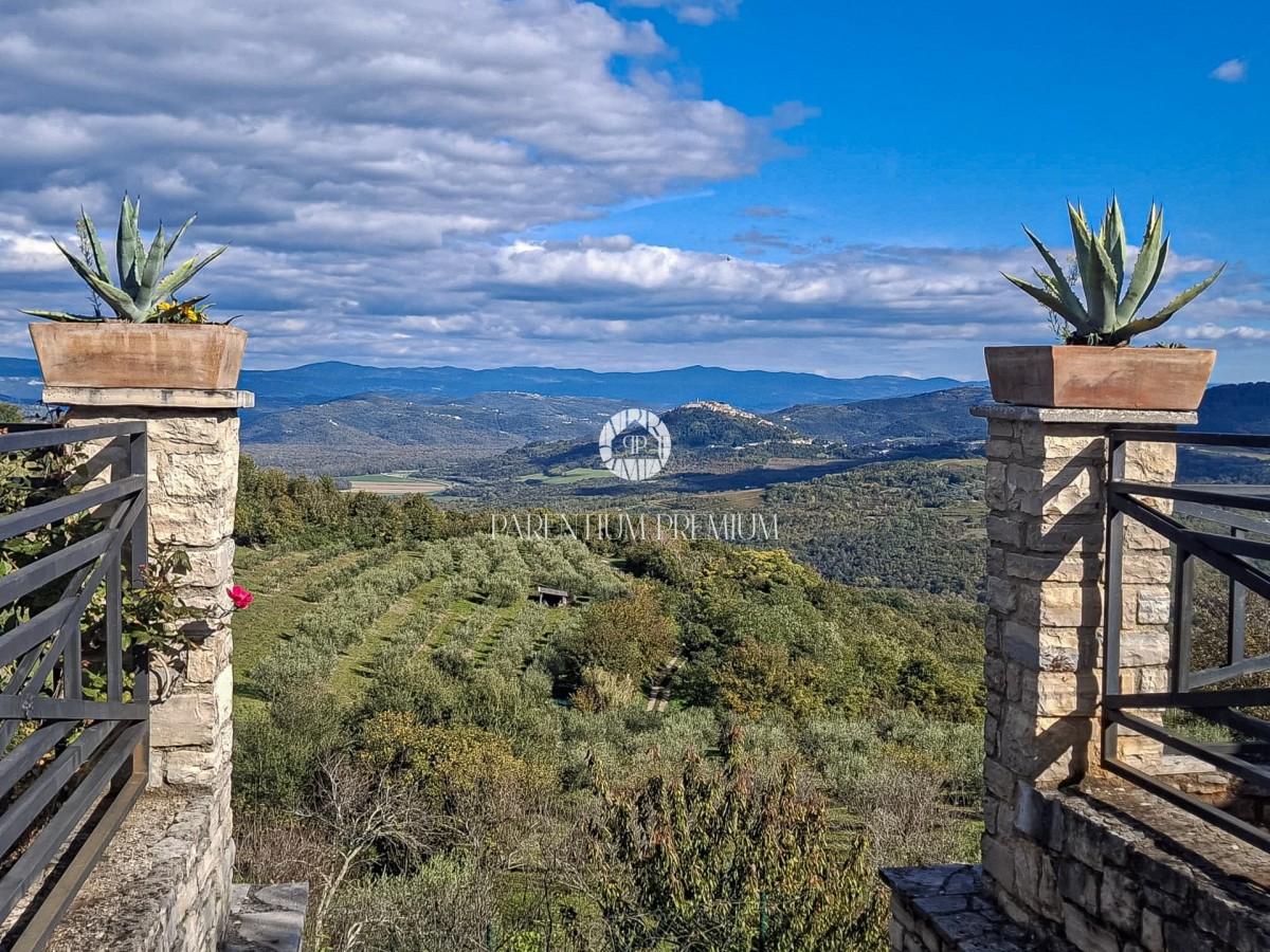 Na mirnoj lokaciji smještena je autentična istarska vila ukupne stambene površine oko 500 m², na uređenom zemljištu od 1.735 m², s otvorenim panoramskim pogledom na vinograde, maslinike i Motovun.