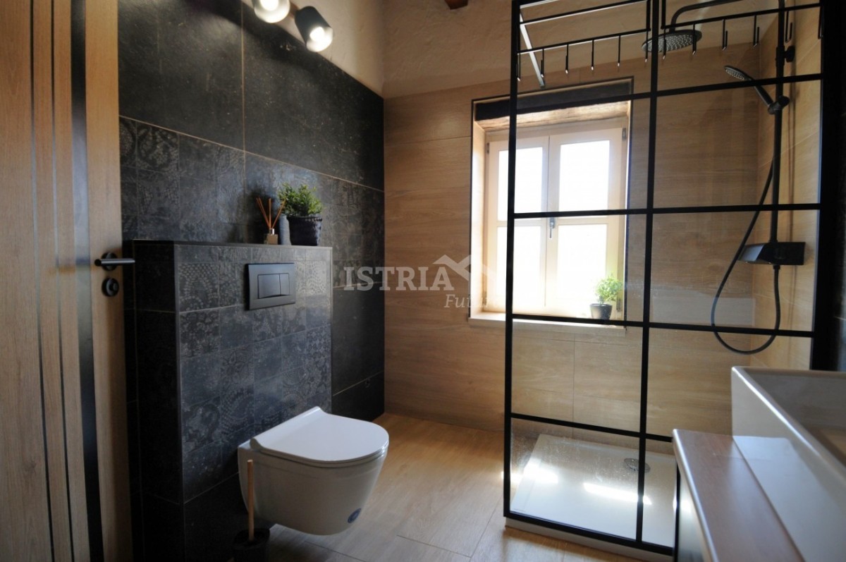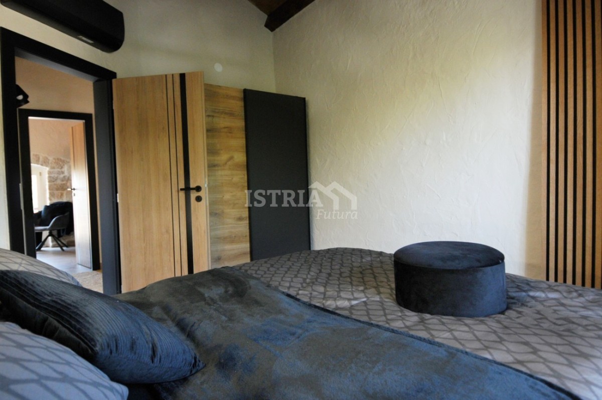 Kuća se prodaje kompletno renovirana i namještena u kombinaciji tradicionalne istarske kamene kuće u spoju sa modernom funkcionalnošću. U kući je postavljeno podno grijanje te 4 klima uređaja - u svakoj spavaćoj sobi te u dnevnom boravku.