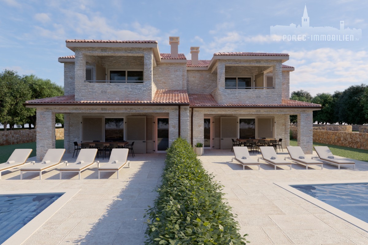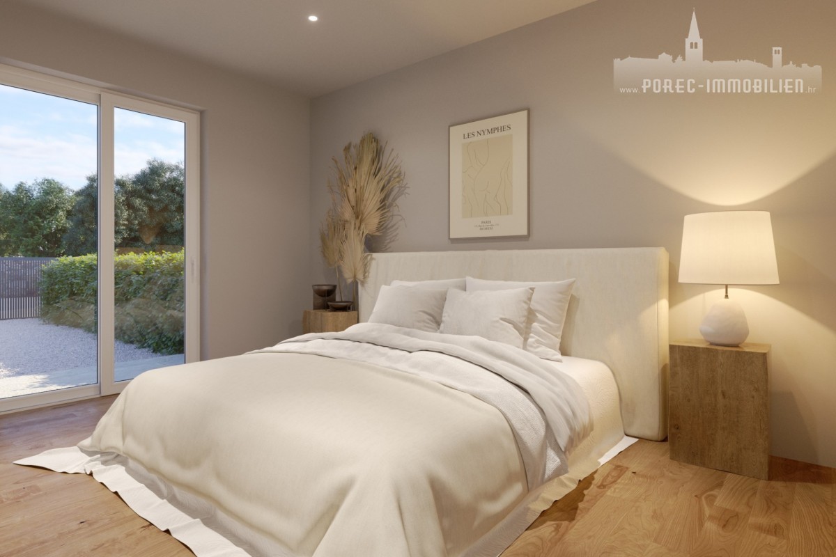 Na prodaju je novogradnja, dvojna kuća smještena 15 km od centra Poreča i prekrasnih plaža.