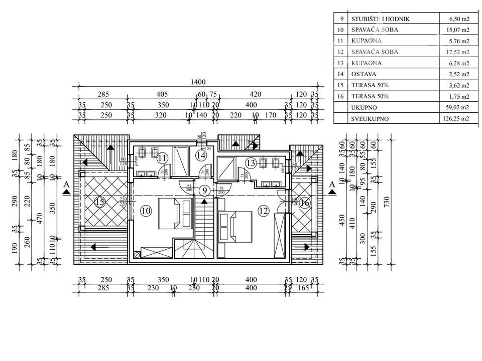 Na katu se nalaze dvije spavaće sobe, svaka s vlastitom kupaonicom i terasom, pružajući privatnost i udobnost.