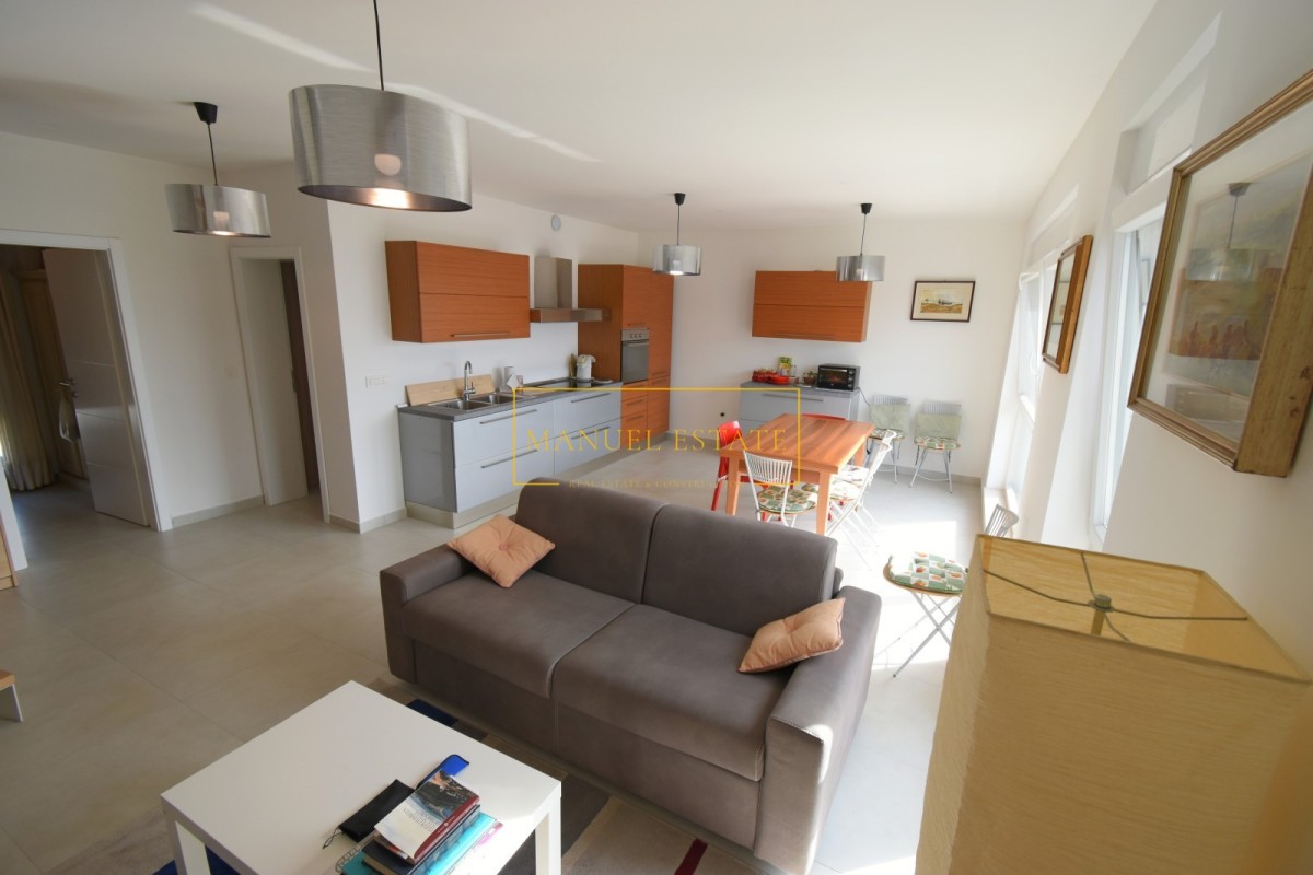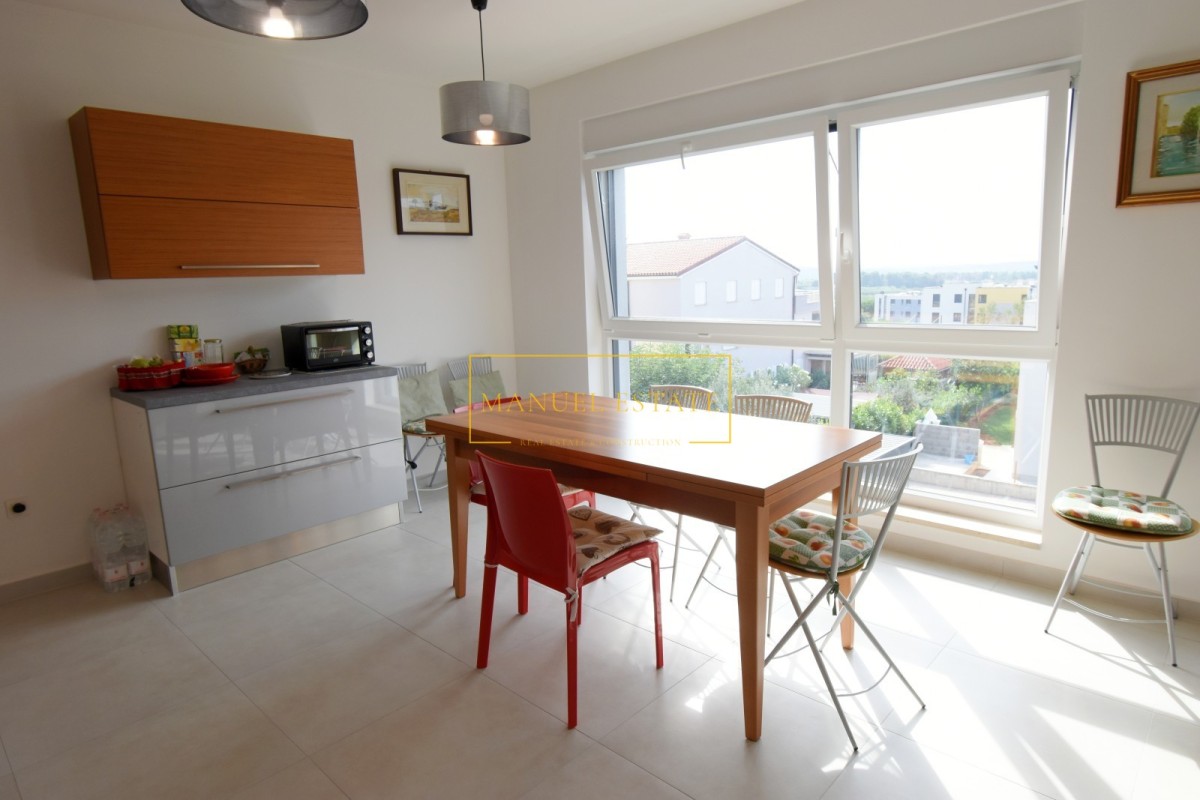 Dvosoban stan na drugom katu s krovnom terasom i pogledom na more. Nalazi se u blizini centra grada, mora i plaža, u Novigradu. Ukupne stambene površine od 90 m2, prostire se na dvije etaže; na prvoj etaži nalazi se ulazni predprostor, hodnik, kupaonica, dvije spavaće sobe, te open-space dnevni prostor - kuhinja + blagovaonica + dnevni boravak. Unutarnjim spitralnim stepenicama dolazi se na drugu etažu gdje se nalazi još jedna spavaća soba s izlazom na krovnu terasu (15 m2) s pogledom na more. Svaka soba je klimatizirana. Stanu također pripada spremište i jedno parkirno mjesto. Stambeni objekt izgrađen je 2019. godine, nalazi se na mirnoj lokaciji, u neposrednoj blizini svih potrebnih sadržaja za što lagodniji svakodnevni život. Savršen kao novi dom ili kao dobra investicija i mogućnost iznajmljivanja. Cijena: 300.000 eura. Za sve ostale informacije slobodno nas kontaktirajte.