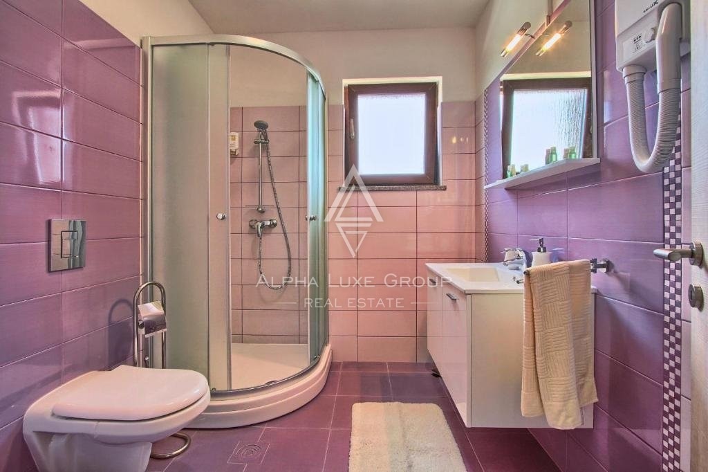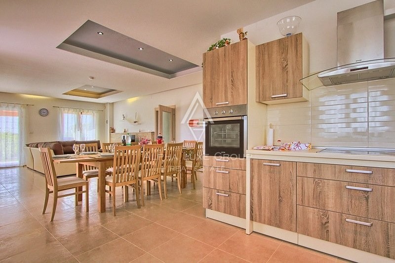 U prizemlju se nalazi dnevni boravak od 30 m2, blagovaonica, opremljena kuhinja, dvije kupaonice i dvije spavaće sobe sa svojim kupaonicama.