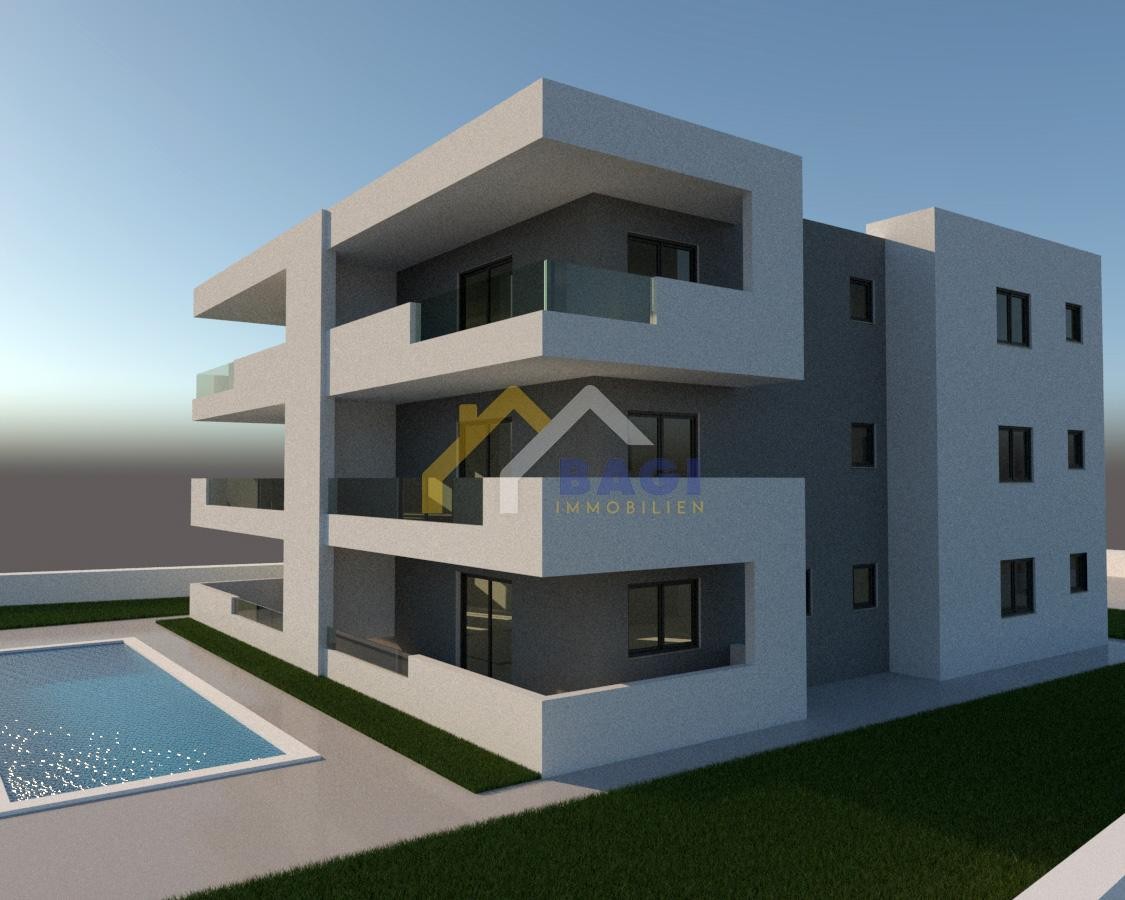 Zgrada će biti visokog standarda opremljena solarnim sustavom, podnim grijanjem, električnim roletama, liftom, pvc troslojnom stolarijom, 15cm izolacijom...