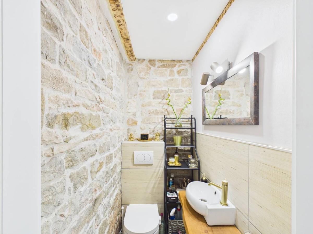 Prilikom obnove posebna je pažnja posvećena očuvanju povijesnog karaktera – originalni kameni zidovi i drveni grede pažljivo su uklopljeni u topao, domaći ambijent. Za udobnost tijekom svih godišnjih doba brine kombinacija podnog grijanja i radijatora. Debeli zidovi osiguravaju da je kuća tijekom ljeta ugodno hladna.