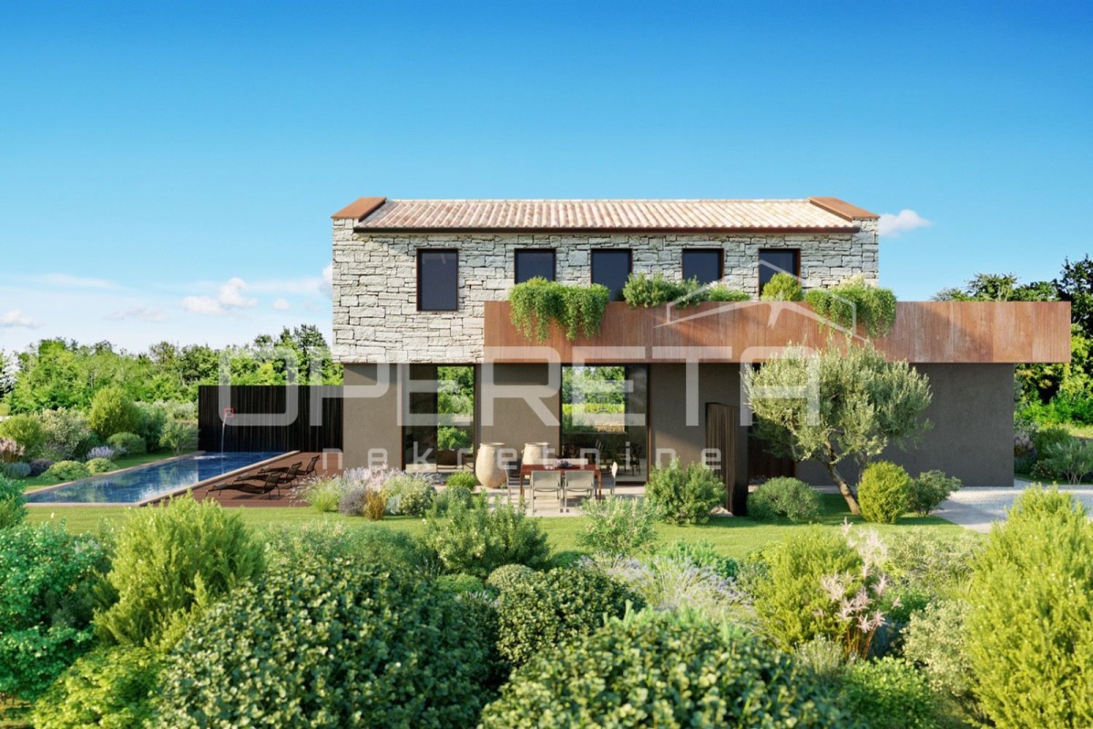 U vanjskom dijelu nalazi se bazen s pripadajućim sunčalištem, vrt te osigurana parkirna mjesta. Okućnica će biti uređena i ograđena, što pruža dodatni osjećaj privatnosti.