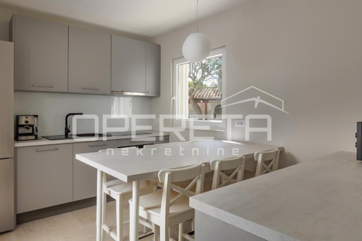 Kuća je opremljena modernim klima-uređajima, izgrađena je od visokokvalitetnih materijala i uređena u modernom stilu. Ova nekretnina je pravo blago i nudi brojne mogućnosti, te je idealna za život iz snova ili kao investicija.