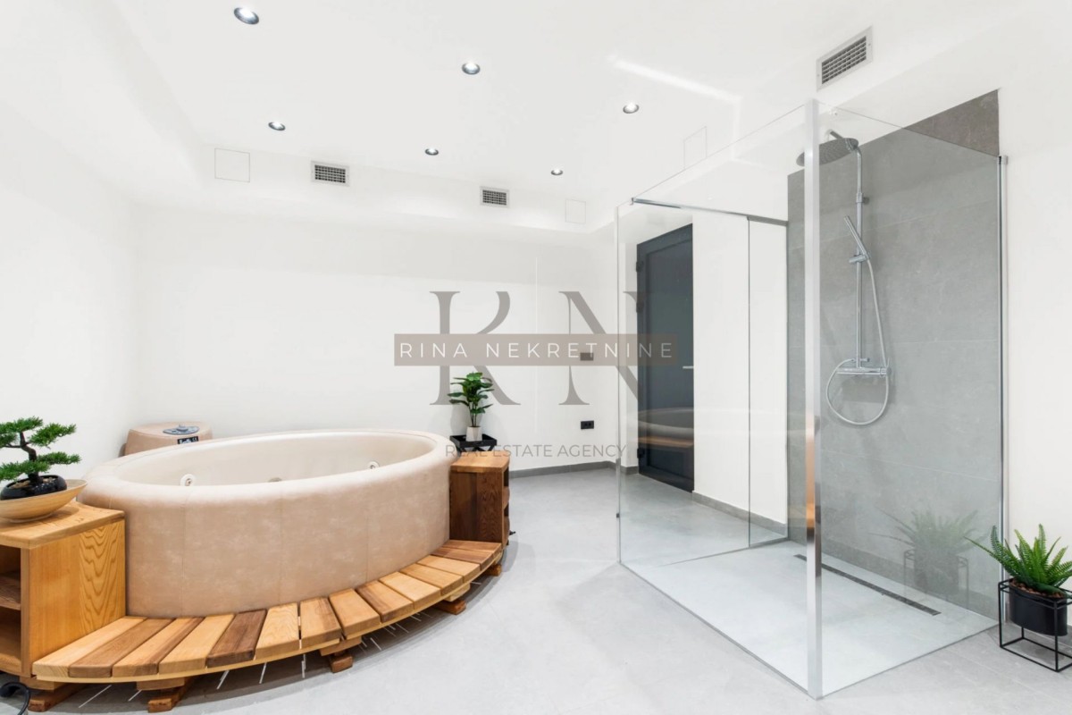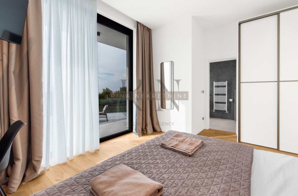 Ova luksuzna vila nudi sve potrebno za uživanje ili kao investicija za najam. Dodatni sadržaji uključuju podrum koji služi kao fitness zona i spa zona, podno grijanje i klimatizaciju. Privatnost i mirno okruženje, a opet blizu svih sadržaja i mora, čine ovu vilu savršenom opcijom.