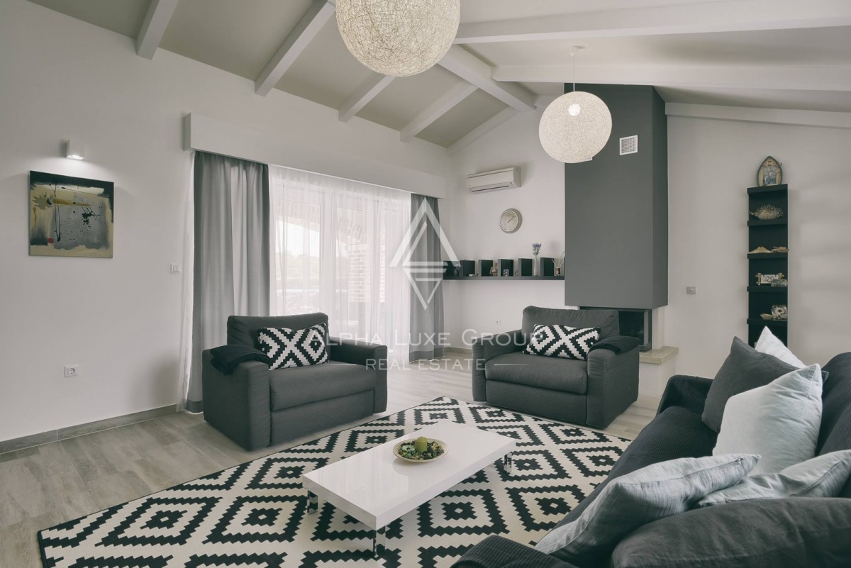 Svaka vila osmišljena je s naglaskom na eleganciju i funkcionalnost te sadrži četiri prostrane spavaće sobe, tri moderne kupaonice, gostinjski toalet i prozračni dnevni boravak povezan s blagovaonicom i potpuno opremljenom kuhinjom. Dnevni boravak vodi izravno na terasu i privatni bazen sa sunčalištem – savršeno mjesto za opuštanje i uživanje u mediteranskom okruženju.