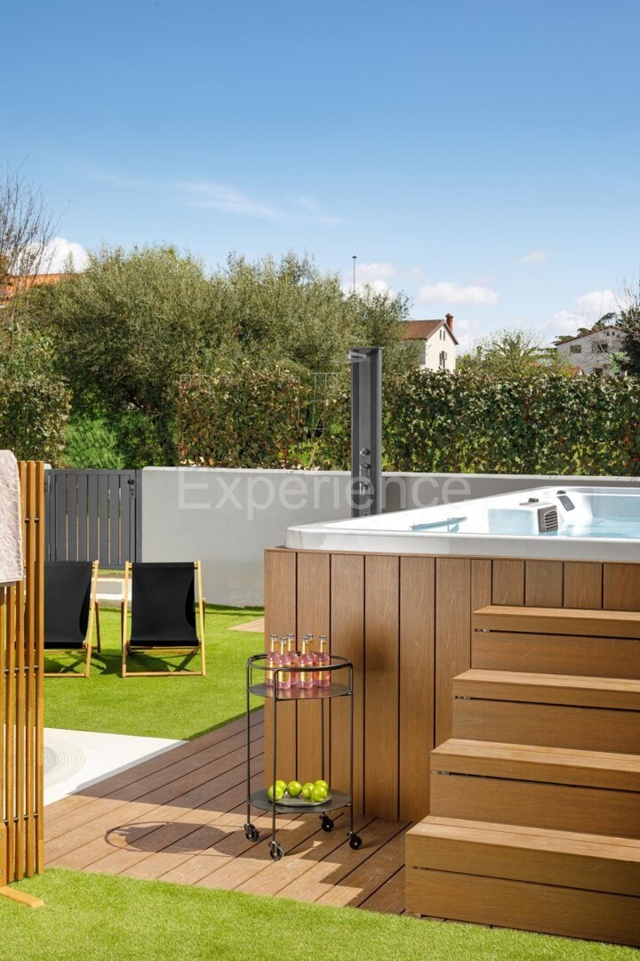 Na odličnoj lokaciji u Poreču, svega 1.000 metara od plaže, na prodaji je elegantna novosagrađena kuća – idealna za obiteljski život, odmor ili kao investicija za iznajmljivanje.To je o posljednja kuća u nizu, s ukupnom površinom od 100,30 m², koja nudi izvanredno osmišljen raspored prostora, visokokvalitetan namještaj i profinjeni dizajn koji spaja funkcionalnost i estetiku. RASPORED PROSTORIJA:• Podrum – prostran prostor za druženje s opremljenom kuhinjom i ostavom — idealan za zabave i večernja okupljanja,• Prizemlje – prozračan dnevni boravak s kuhinjom i blagovaonicom, povezan s natkrivenom terasom i uređenim vrtom, te toalet za goste,• Kat – dvije udobne spavaće sobe i moderna kupaonica. EKSTERIJER:U intimnom, ograđenom vrtu zasađenom mediteranskim biljem nalazi se jacuzzi i natkriveni kutak s roštiljem – savršeno mjesto za opuštanje i druženja na otvorenom. Vrt pruža privatnost i osjećaj pravog odmora. OSTALE POGODNOSTI:• dva parkirna mjesta,• grijanje i hlađenje regulirano je putem klima uređaja, • namještaj i kućanski aparati uključeni u cijenu,• kuća je potpuno opremljena i spremna za useljenje. LOKACIJA:Posebna pogodnost ove nekretnine je lokacija – plaža, restorani, caffe bar i market nalaze se na pješačkoj udaljenosti, a pritom uživate u miru i privatnosti.Savršena kombinacija moderne udobnosti, mirne lokacije i blizine mora.