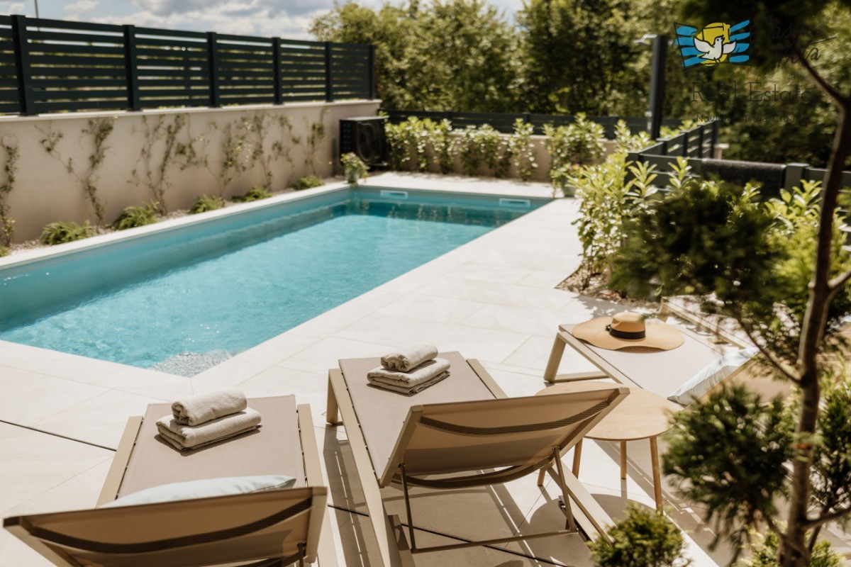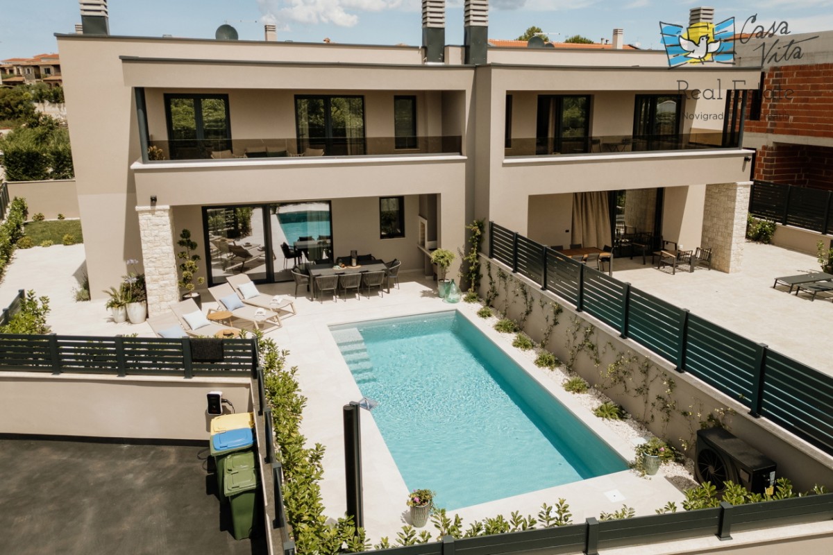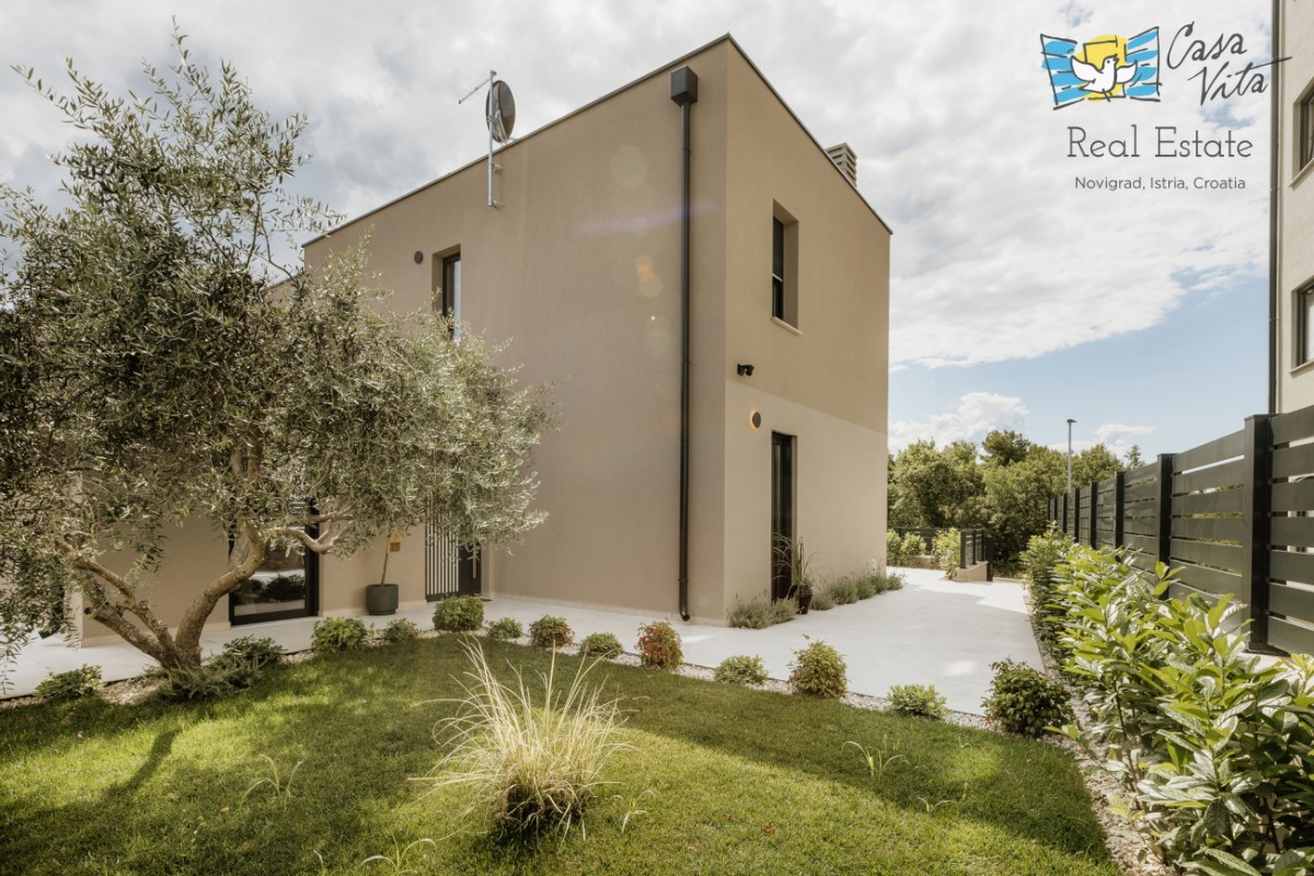 Na prodaju je dvojna kuća ukupne površine 163 m2, smještena u atraktivnom dijelu Poreča. Nekretnina je izgrađena 2025. godine i nalazi se na uređenoj parceli površine 350 m2, što ovu kuću čini odličnim izborom za one koji traže suvremeni životni prostor blizu mora.