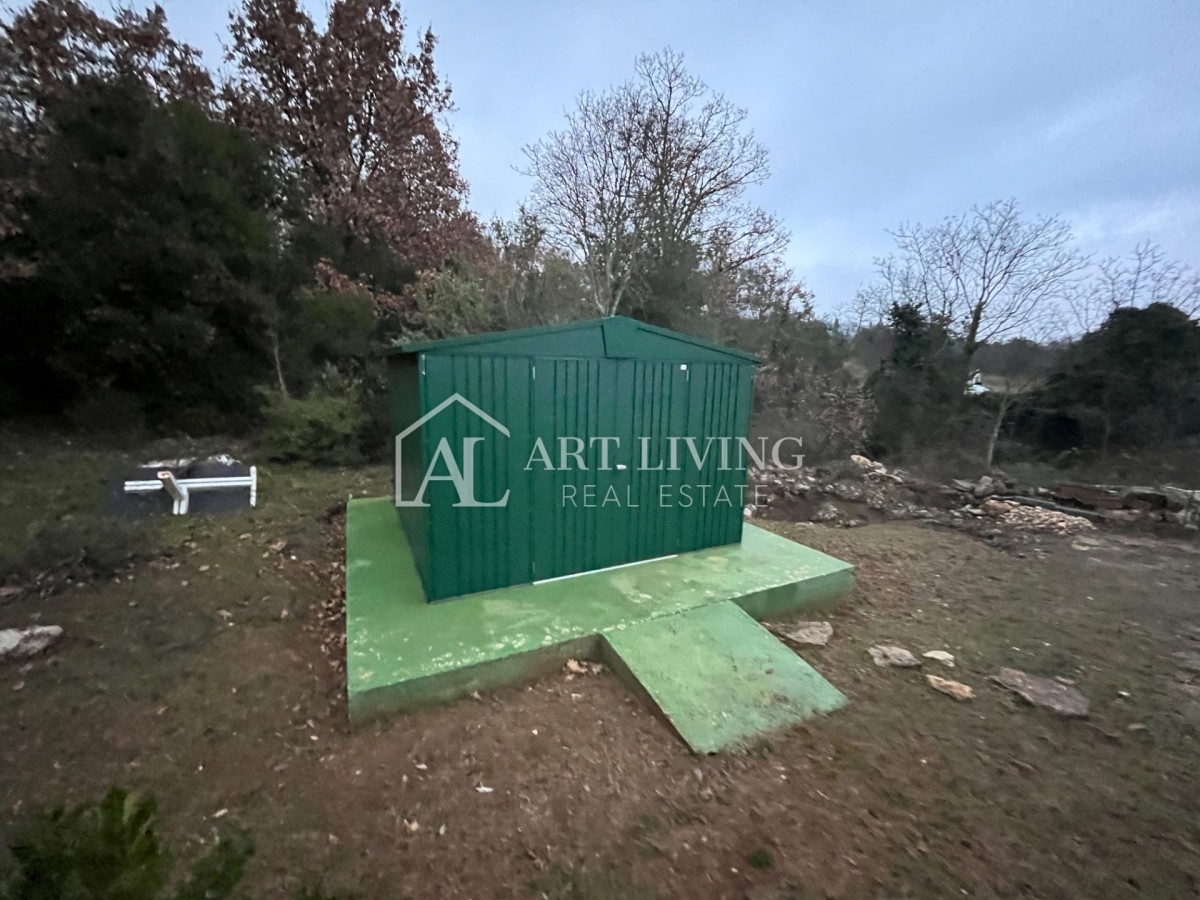 Iza kuće nalazi se i metalna kućica koja služi kao ostava i dodatni skladišni prostor.