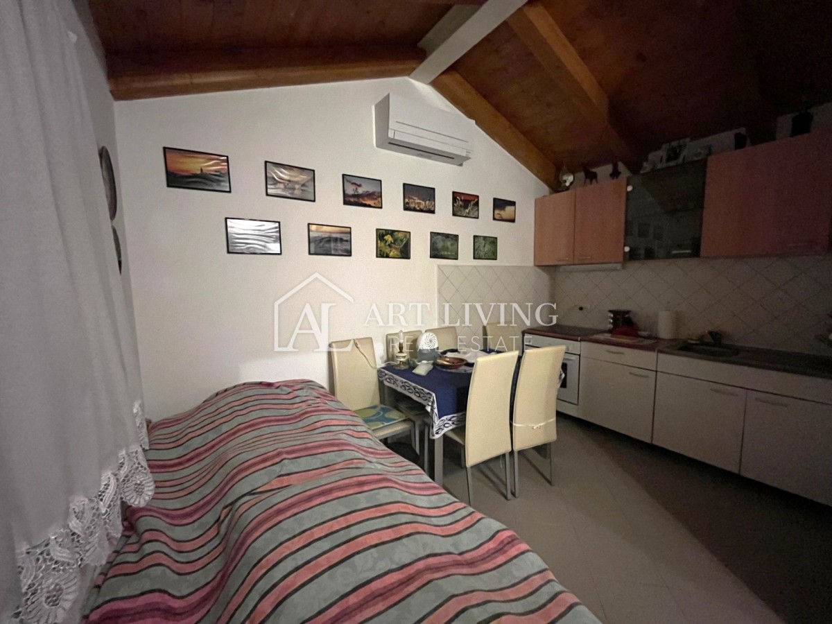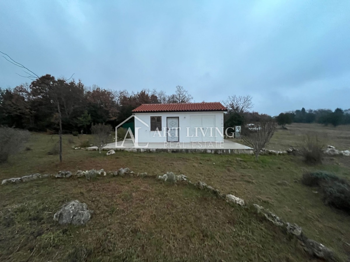 Prodaje se šarmantna malena kuća okružena velikim zemljištem, udaljena 5 km od Rovinja te 3 km od mora i uređenih plaža.