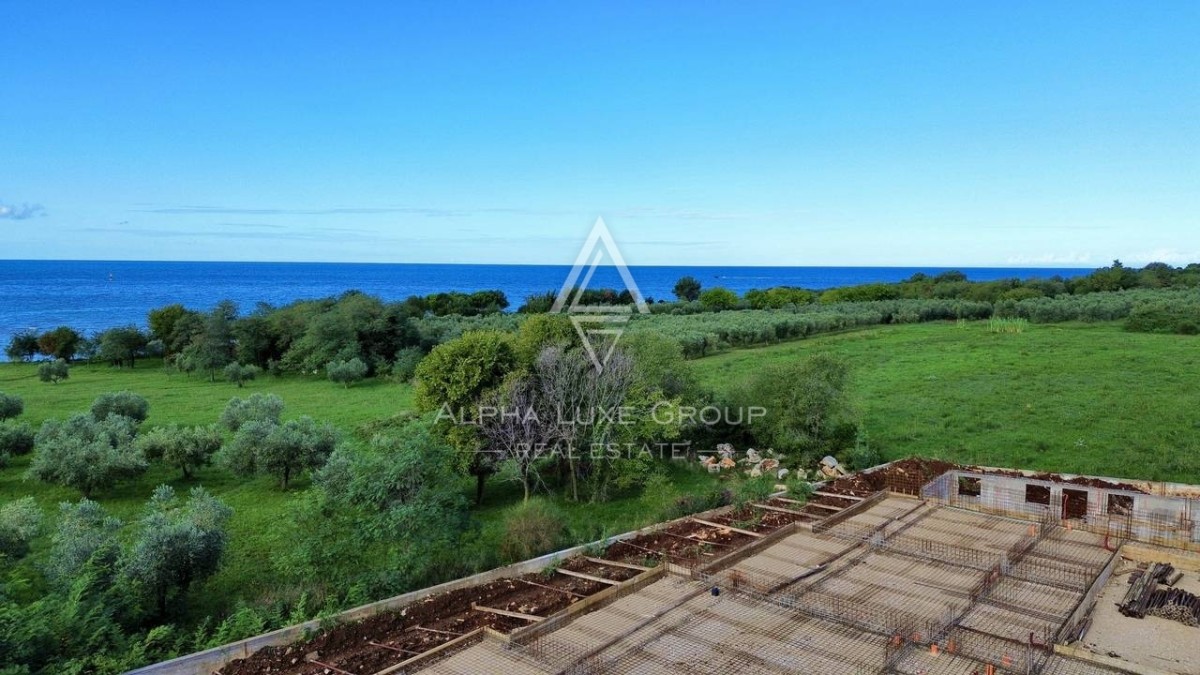 In the prestigious coastal area of Savudrija near Umag, this exceptional new development offers a rare chance to acquire a contemporary residence just steps from the sea. Positioned virtually on the waterfront, the project includes five luxurious terraced homes featuring uninterrupted panoramic sea views and a peaceful Mediterranean atmosphere—perfect for year-round living, holiday use, or high-end investment.
