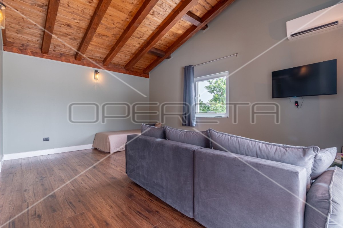 Uz kuću se nalazi još jedan dodatan objekt koji ima svoj ulaz, sobu i kupaonicu tako da može biti fitnes zona, igraonica ili poseban apartman.