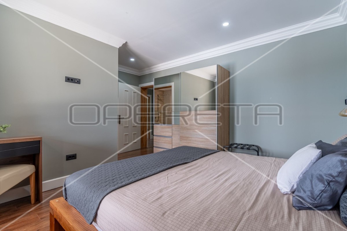 Sastoji se od hodnika, dnevnog boravka sa kuhinjom i blagovaonicom i izlazom na prostranu natkrivenu terasu, tri spavaće sobe od kojih svaka ima vlastitu kupaonicu, klima uređaj i izlaz na terasu i sunčalište bazena.