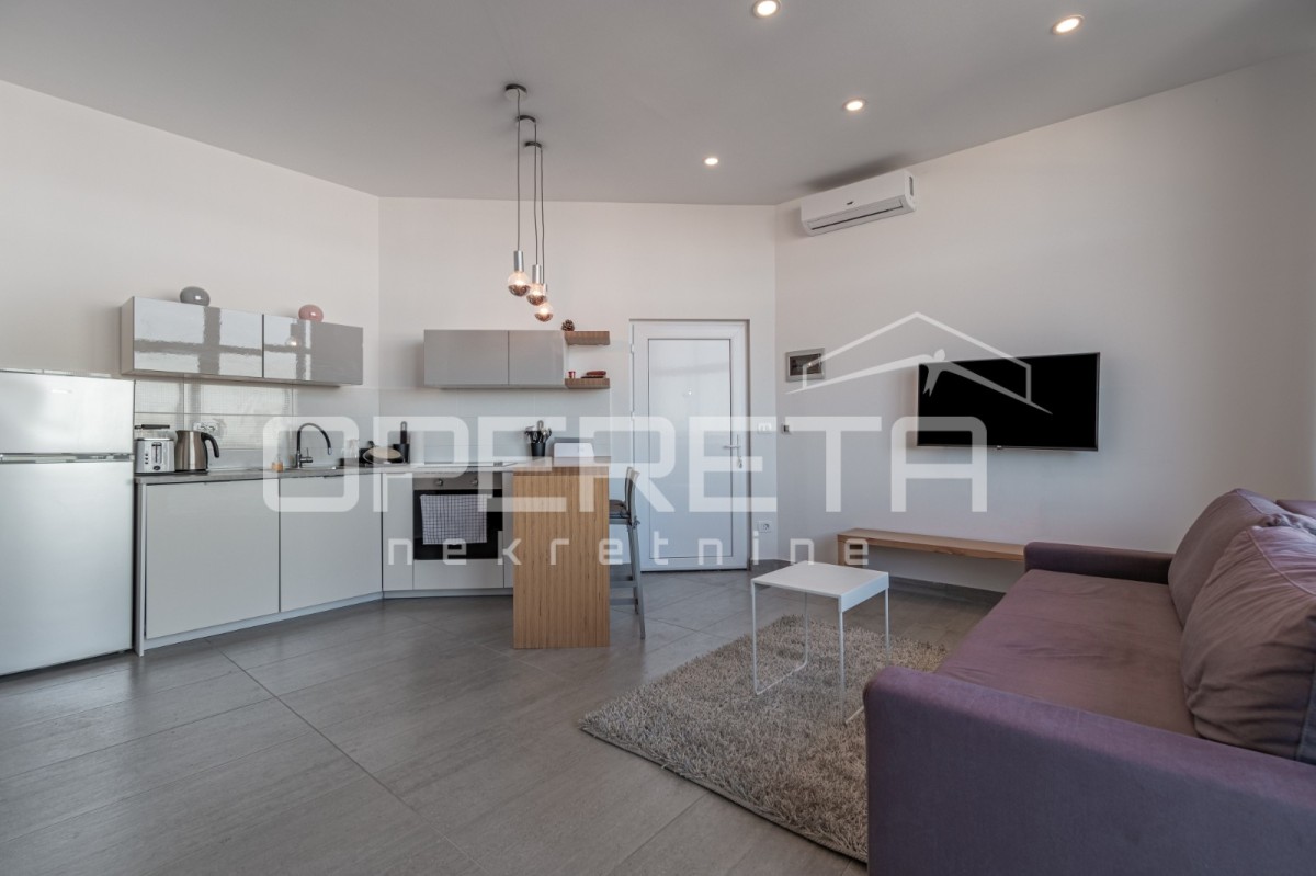 Impresivan studio apartman na iznimnoj lokaciji svega 100 metara od mora sa svim gradskim sadržajima u neposrednoj blizini.