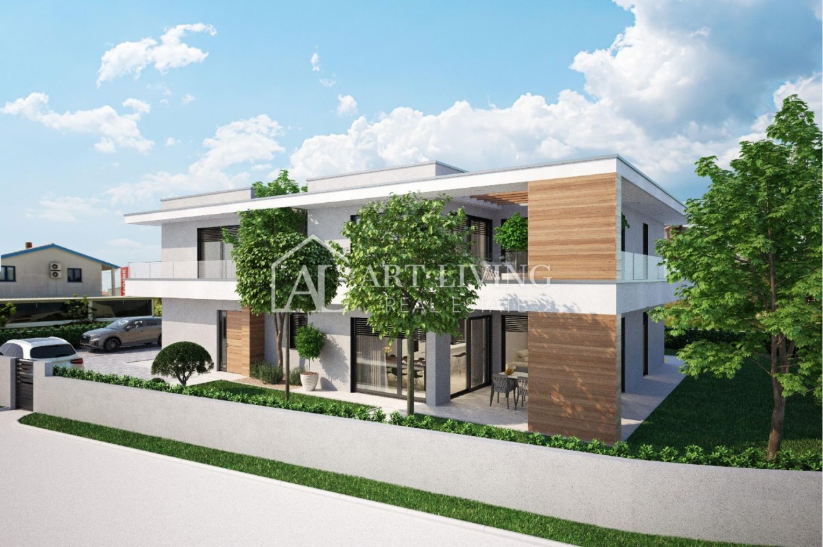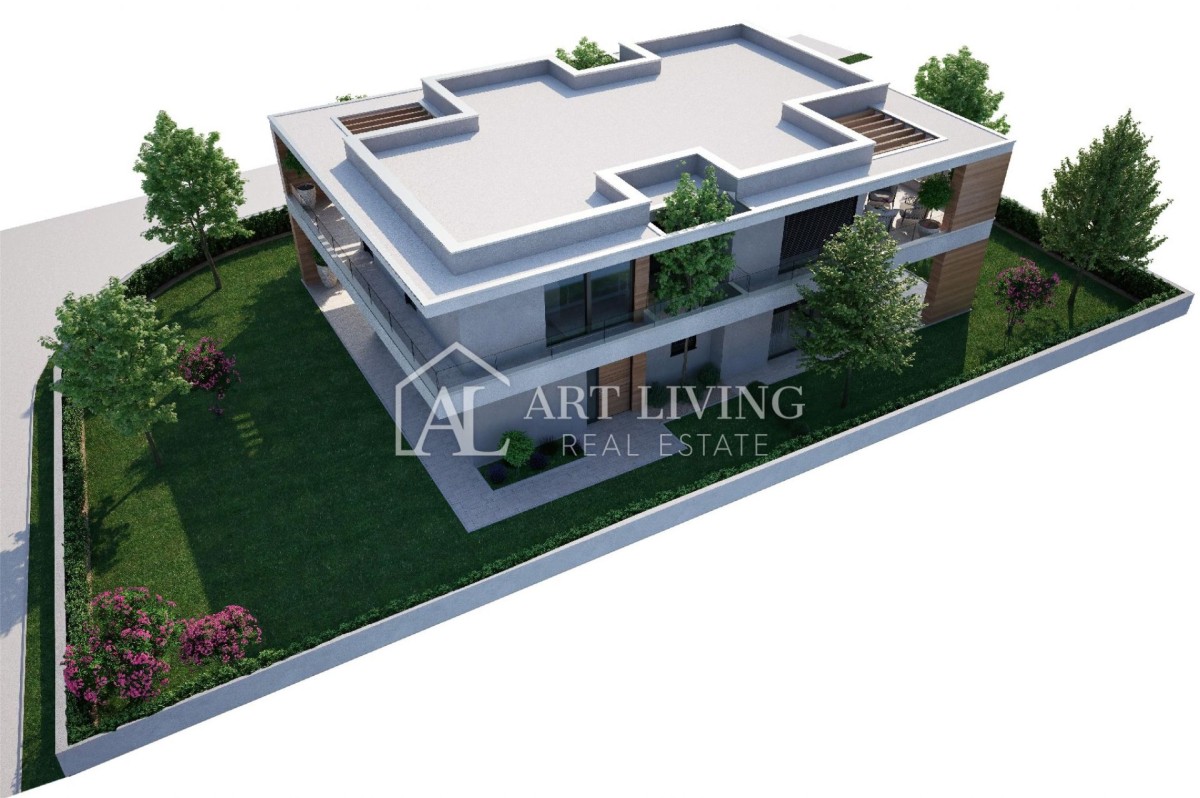 Prodaje se moderna dvojna kuća, na mirnoj i lijepoj lokaciji udaljenoj svega nekoliko minuta hoda od centra Umaga te 500 metara od mora i uređenih plaža.
