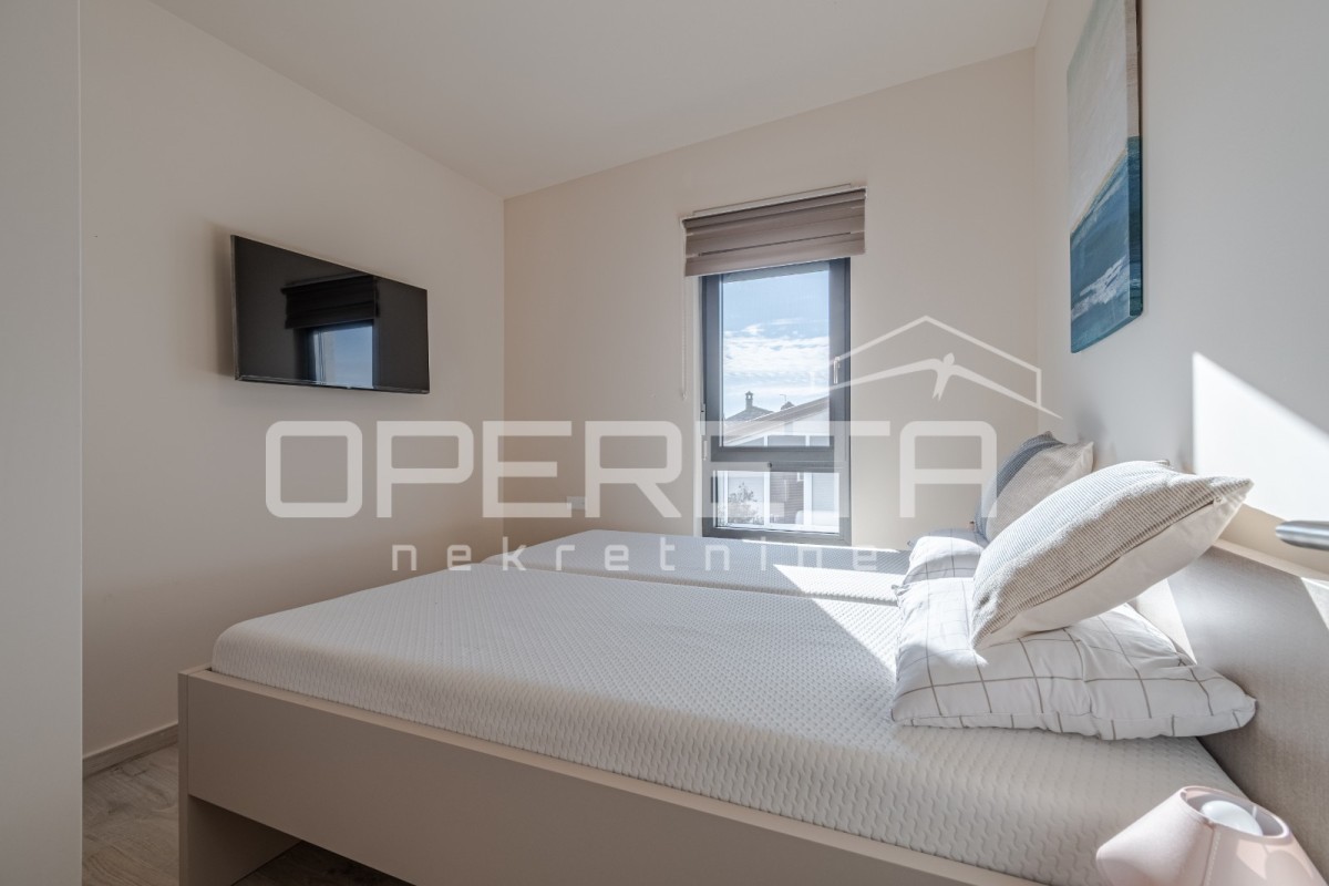 Stan ima zatvorenog prostora 49,45 m2, natkrivenu terasu površine 10,90 m2, 2 parkirna mjestapa i spremište u prizemlju zgrade od 11,00 m2.