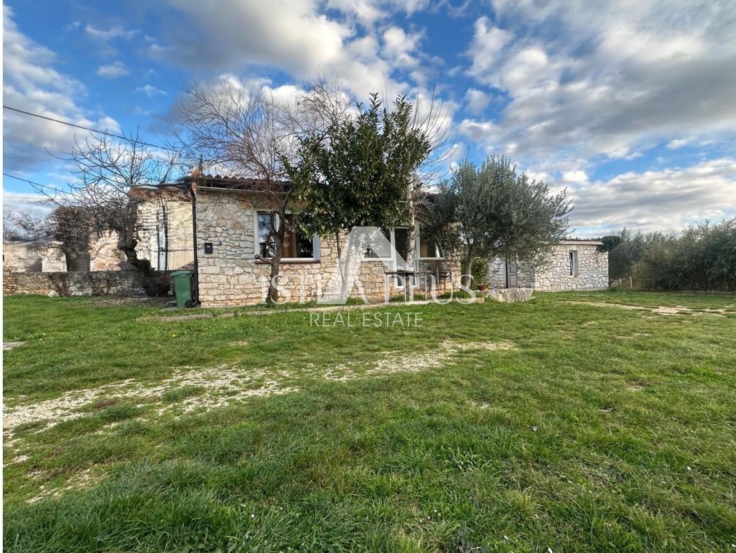 Kuća, prizemnica autentična kamena u istarskom stilu, površine 49 m², s pomoćnom (gospodarskom) zgradom od 22 m², smještena na prostranoj parceli od 536 m², okružena zelenilom i prirodom.