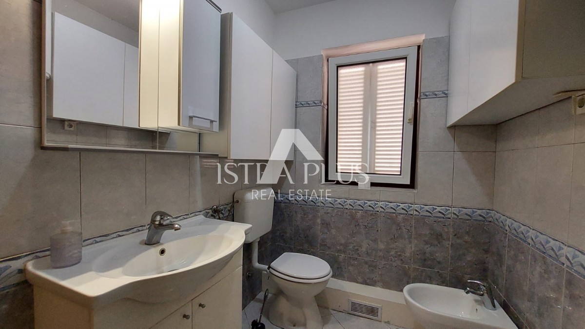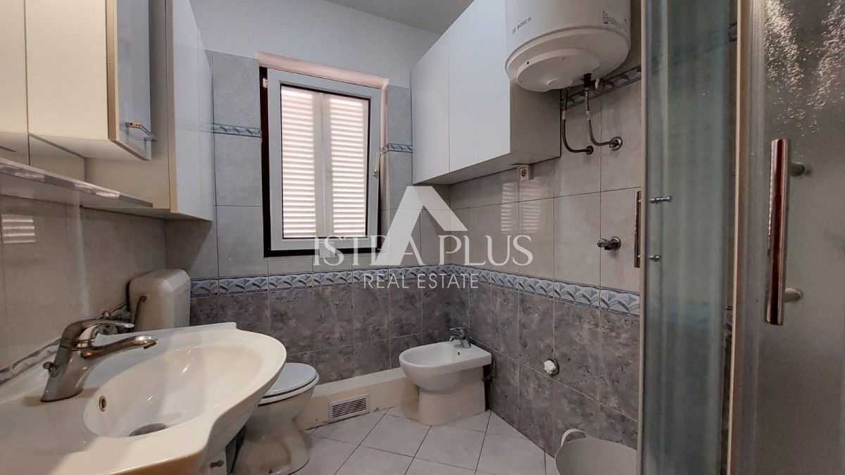 Odlična prilika, stan na prvom katu zgrade, stan ima površinu od 56 m², sastoji se od dnevnog boravka, blagovaonice, kuhinje, natkrivene terase, hodnika, dvije spavaće sobe i kupaonice. Stan se prodaje kompletno namješten, ima pogled na more, klima uređaj, tendu, peć na pelete (peć grije dnevni dio, kupaonicu i spavaću sobu) i jedno parkirno mjesto ispred zgrade. Stan je udaljen cca 3 km od centra Poreča, cca 600 m od mora/plaže i 100 m od stanice gradskog prijevoza.