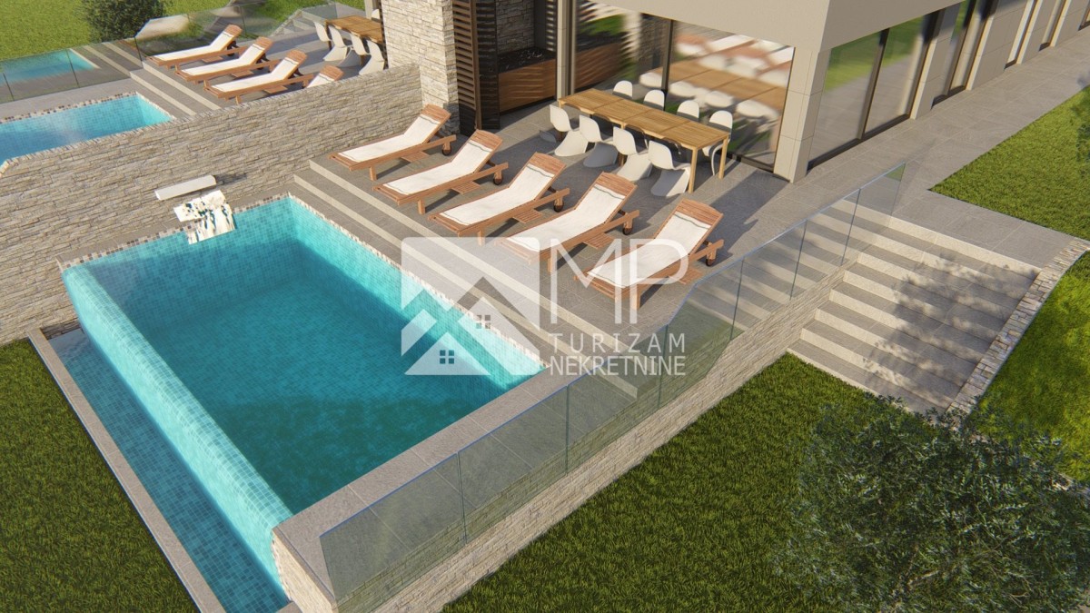 Na prostranoj parceli predstavljamo Vam projekt sa dvije dvojne vile, od kojih će svaka biti površine 220 m2.