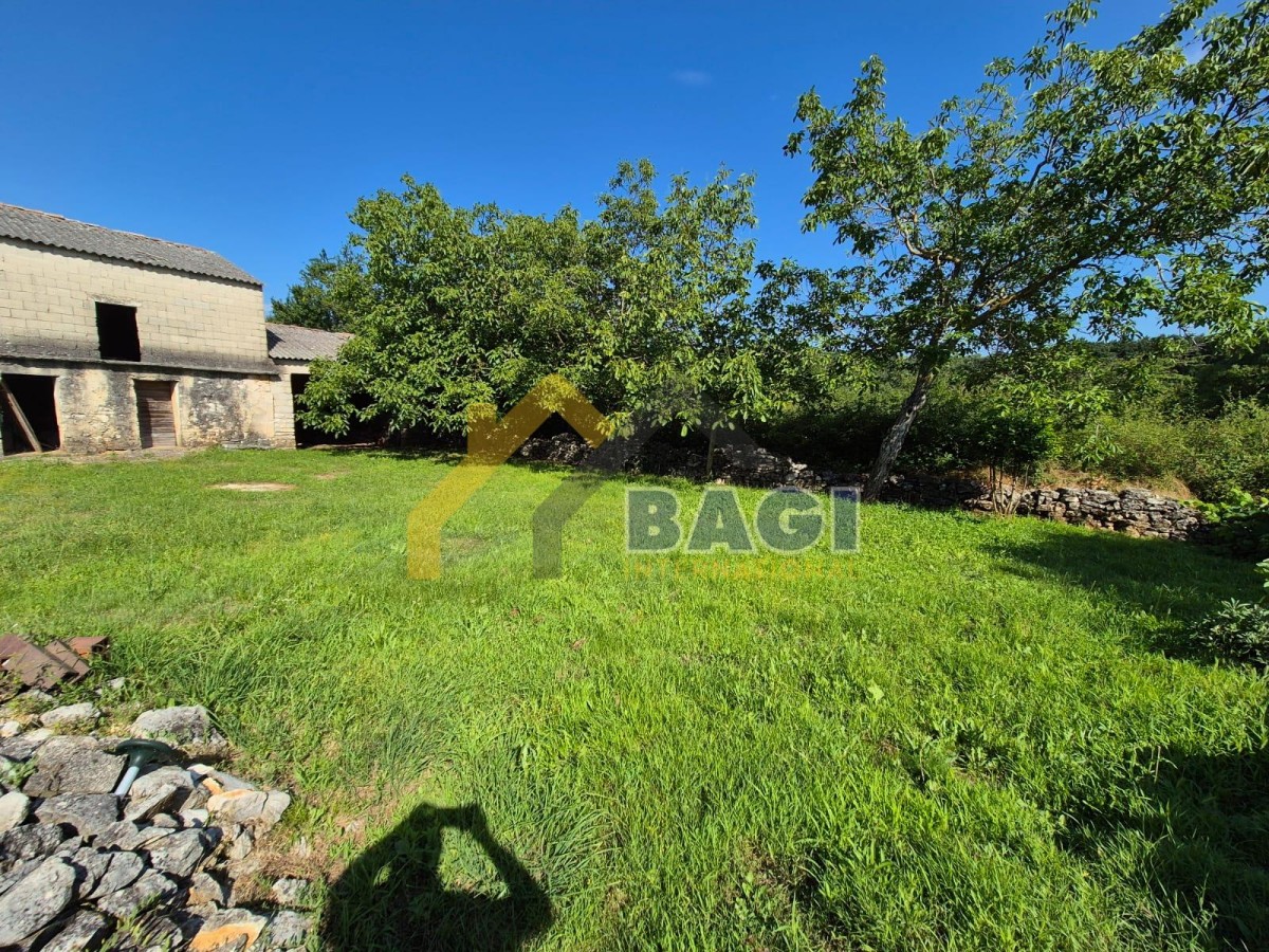 Na zemljištu se nalazi kamena staja cca 70m2 i garaža cca 40m2 te ima visok krv.
