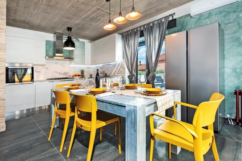 U srcu očaravajućeg gradića Kanfanar u Istri nalazi se ova izuzetna vila, nekad u najmu, a sada dostupna za prodaju. S impresivnih 200m2 stambenog prostora, postavljena na prostranom zemljištu od 600m2, ova nekretnina predstavlja vrhunac luksuznog življenja. Arhitektura vile savršeno spaja modernu udobnost i tradicionalni šarm, protežući se na dvije etaže.