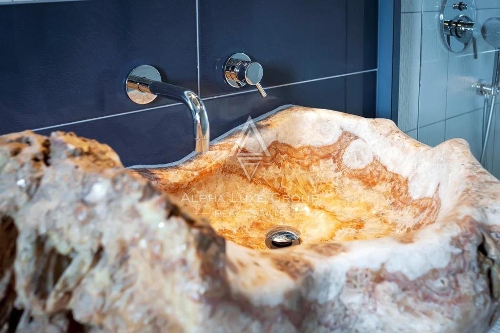 Kupaonice su opremljene tuš kabinama "ONLY" s retarderima, jedinstvenim umivaonicima od kristal-kalcita i kvalitetnom Catalano sanitarijom s ugradbenim Geberit Sigma cisternama. Dnevni boravak ima termalni kamin, centralni usisavač, a kuću opslužuje bojler od 300 l plus spremnik vode od 400 l za grijanje (Cordivari), s mogućnošću dodavanja solarnih panela i toplinske pumpe.