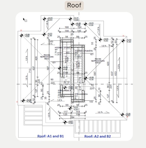 Treća etaža (51,06 m²) namijenjena je kao tehnička i relaks zona, s hodnikom (4,35 m²), strojarnicom (0,77 m²) i izlazom na otvorenu krovnu terasu (45,94 m²), idealnu za personalizaciju prema vašim željama.