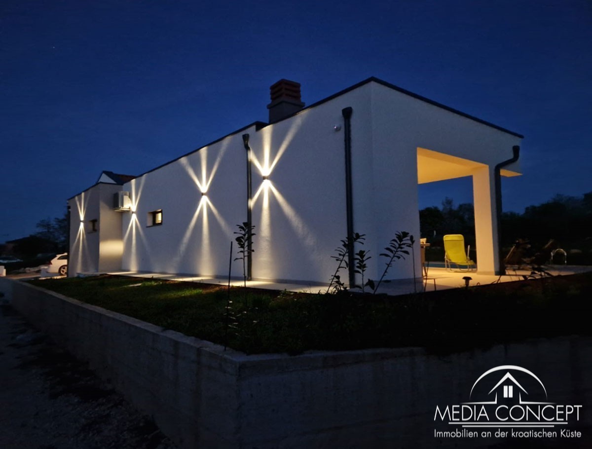 Ovaj iznimno šarmantan i elegantno dizajniran bungalov smješten je u mirnom, pitoresknom mjestašcu samo 7,5 km od Rovinja, jednog od najljepših istarskih bisera. Na samom rubu građevinske zone, u dodiru s netaknutom prirodom, ova moderna prizemnica predstavlja idealan spoj privatnosti, udobnosti i blizine mora. Savršena je za one koji sanjaju vlastitu oazu mira, ali i za investitore koji traže nekretninu vrhunske kvalitete s velikim potencijalom za turistički najam.