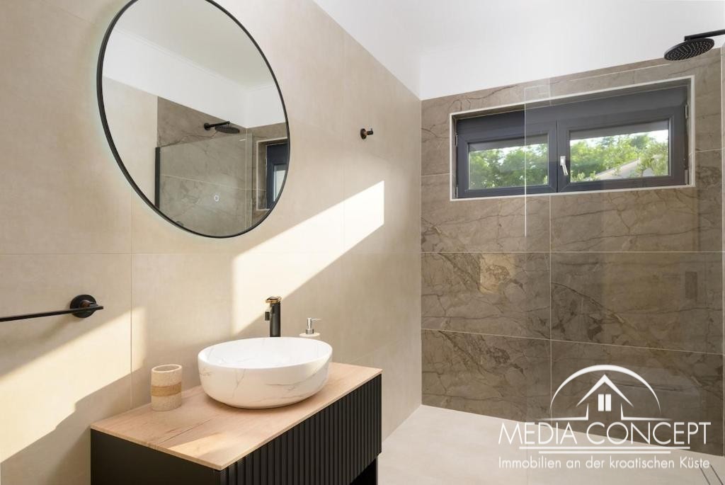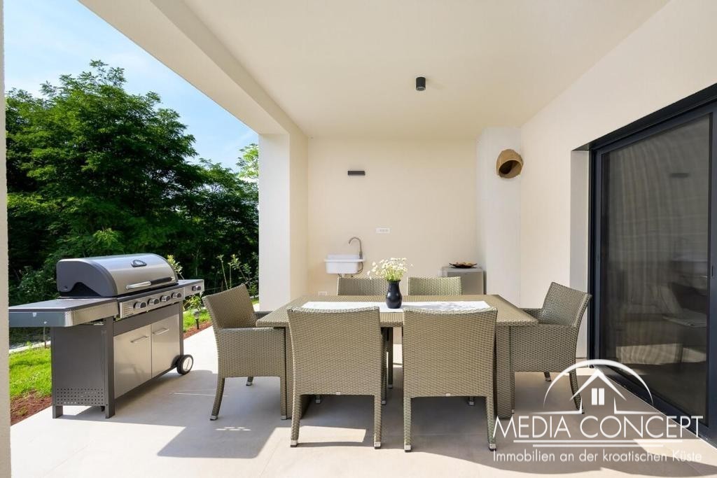 Eksterijer kuće jednako je pažljivo osmišljen. Dvorište je oblikovano tako da zahtijeva minimalno održavanje, što ga čini izuzetno praktičnim za svakodnevni život i turističko korištenje. Okolna priroda pruža dojam potpunog sklada, obilje zelenila i mir koji je sve teže pronaći u blizini urbanih središta.