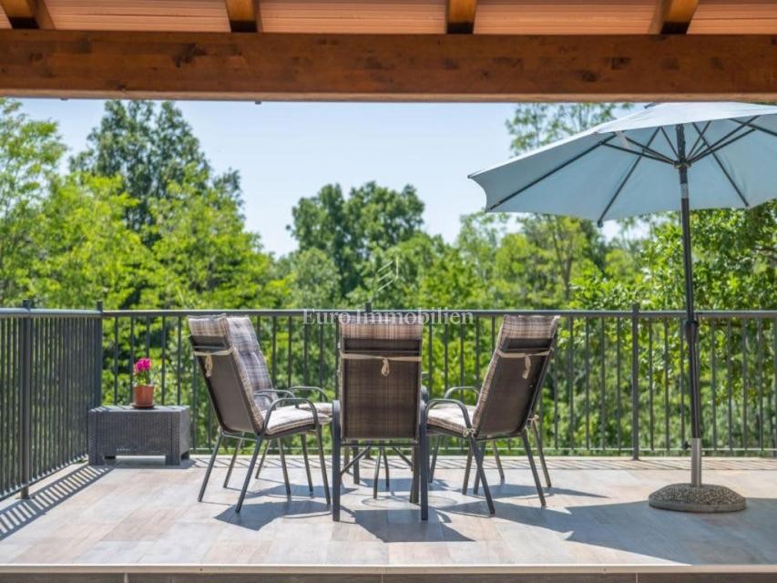 Prodaje se moderna prizemnica s bazenom,okružena zelenilom nalazi se na mirnoj lokaciji u selu koje je otprilike 8 km udaljeno Labina, dok je turističko mjesto Rabac udaljeno oko 12 km.