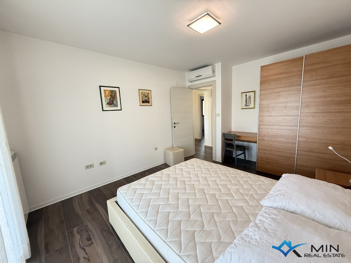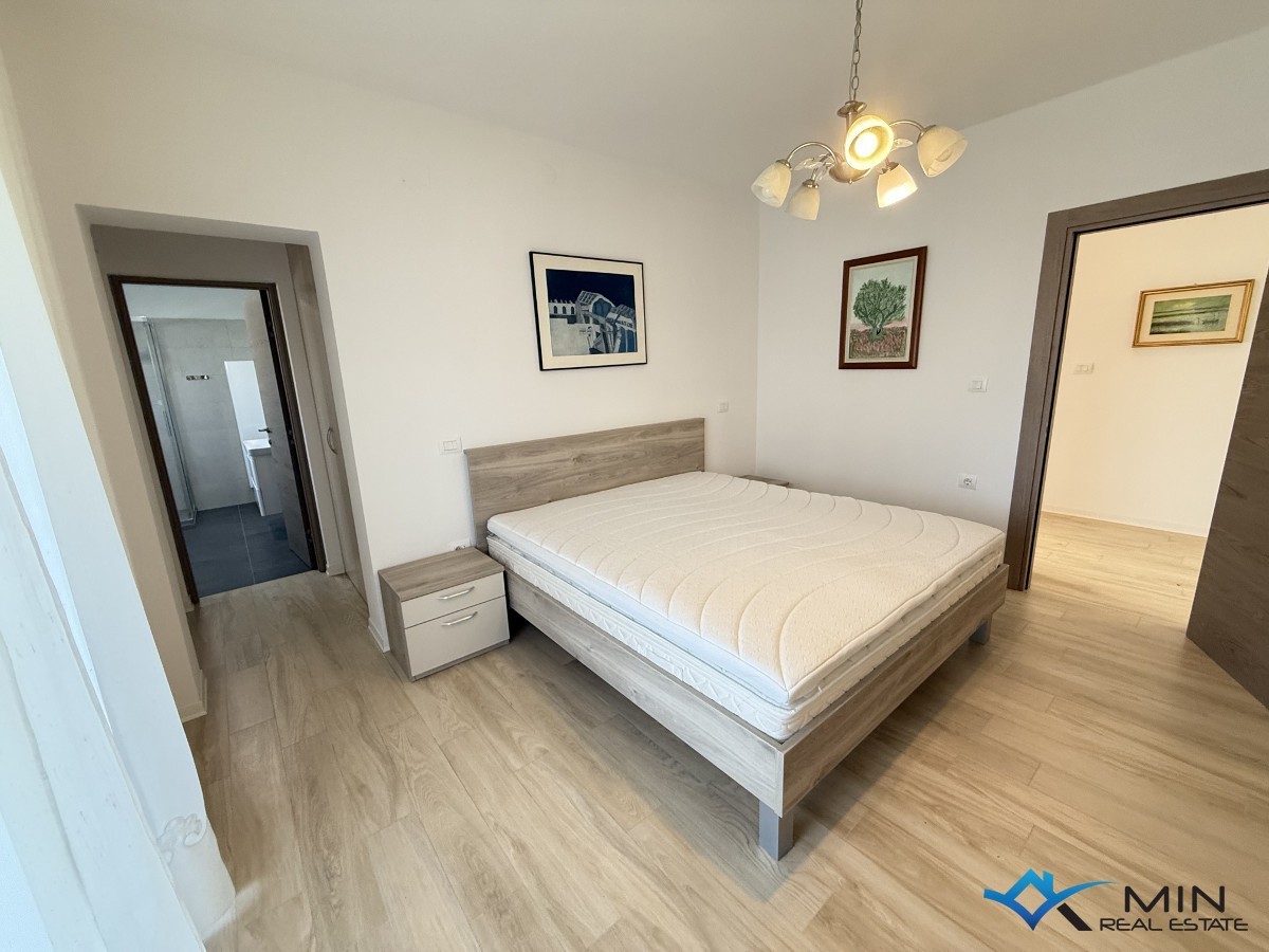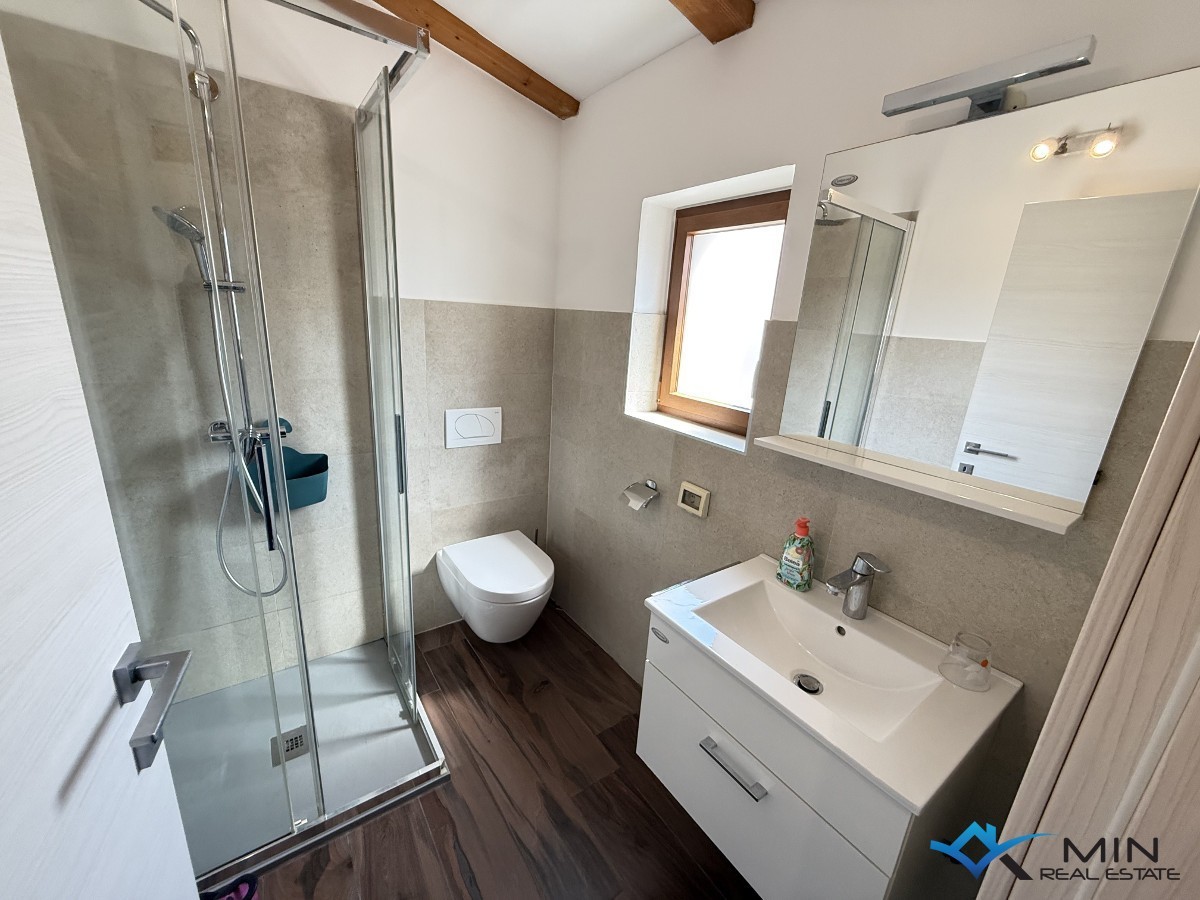 Prodaje se kuća na odličnoj lokaciji u centru grada, smještena u blizini svih sadržaja. Kuća se sastoji od 3 apartmana koji se nalaze u prizemlju i na 1. katu. Stan u prizemlju ima 71 m2 te ima poseban ulaz. Sastoji se od hodnika, wc-a, spavaće sobe sa privatnim kupatilom i izlazom na natkrivenu terasu te open space prostora u kojem se nalaze kuhinja s blagovaonicom i dnevni boravak s izlazom na natkrivenu terasu. Na 1. katu se nalaze 2 stana, koja se mogu koristiti odvojeno ili kao 1 veliki stan. Manji stan se koristi kao studio apartman i sastoji se od dnevnog boravka/ kuhinje i kupatila. Veći stan ima 74, 5 m2 i sastoji se od hodnika, kupatila, 2 spavaće sobe ( jedna spavaća soba ima izlaz na loggiu ) i open space prostora u kojem je smještena kuhinja s blagovaonicom i dnevni boravak. Kući pripada vrt od 368 m2 na kojem je moguće izgraditi bazen. Kuća ima 5 parkirnih mjesta od kojih je 4 natkriveno.