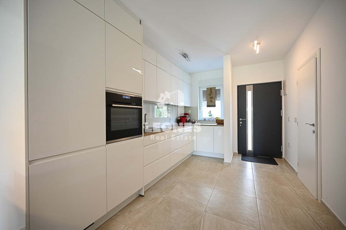 Kuća se sastoji od ulaznog hodnika, wc-a, ostave, lijepe i kvalitetno namještene kuhinje sa blagovaonicom te dnevnog boravka sa izlazom na natkrivenu terasu koja je povezana sa lijepo uređenim dvorištem u kojem je zasađeno razno meditransko bilje.