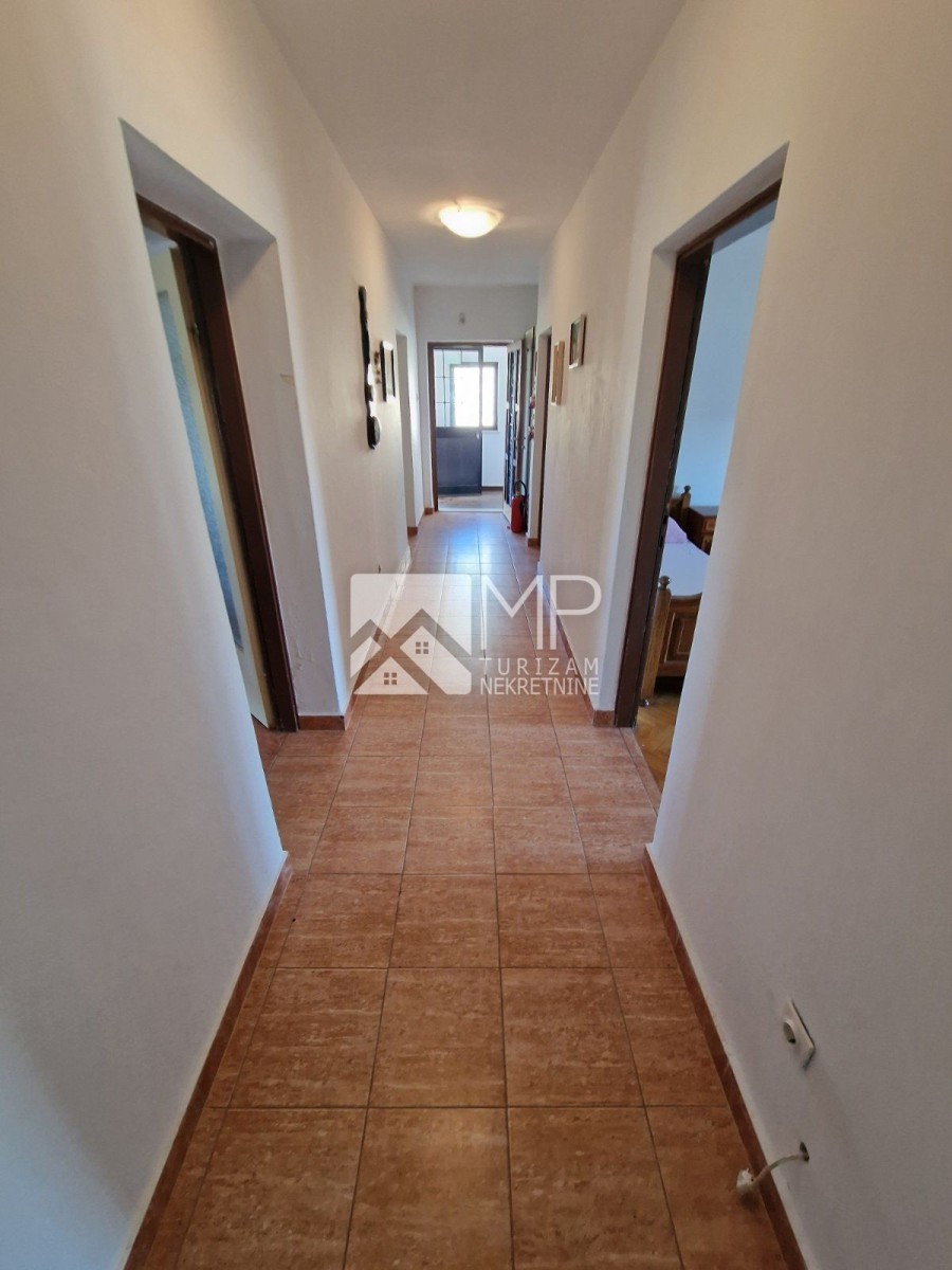 U samom centru Ližnjana nalazi se ova kuća u nizu udaljena 1km od mora, sa tri odvojena stana. Kuća se sastoji od podrumskog dijela, prizemlja i kata, smještena na parceli od 345m2. Podrumski dio služi kao konoba i ima površinu 30 m2. Prizemlje se sastoji od poslovnog prostora i jednog stana, svaki sa odvojenim ulazima, a vode se kao poslovni prostori te imaju uporabnu dozvolu te svu dokumentaciju ako se budući kupac želi baviti nekom djelatnošću. U prostoru se nalazi kuhinja i dnevni boravak, kupaonica, dvije spavaće sobe i pripadajuća terasa ispred ulaza. Stan se sastoji od ulaznog hodnika, kupaonice, kuhinje s dnevnim boravkom i jedne spavaće sobe. Iza kuće se nalaze vanjske stepenice koje vode na kat gdje se nalazi veliki stan od 115 m2, a sastoji se od dugačkog hodnika, dnevnog boravka, kuhinje, ostave, tri spavaće sobe, kupaonice te dvije terase. Jedna terasa ima pogled na ulazni dio kuće gdje se nalaze parkinzi za automobile i do nje se dolazi kroz spavaće sobe. Iz kuhinje se izlazi na drugu terasu s pogledom na more, prema otoku Cresu i prema Premanturi. Iza i pored kuće se nalazi okućnica s vanjskim roštiljem, a postoji mogućnost izgradnje bazena. Kuća se u potpunosti ograđena te nudi privatnost i mir, a postoji mogućnost parkiranja nekoliko automobila. Idealna prilika za sve one koji se, uz minimalna ulaganja, žele baviti turističkim iznajmljivanjem.