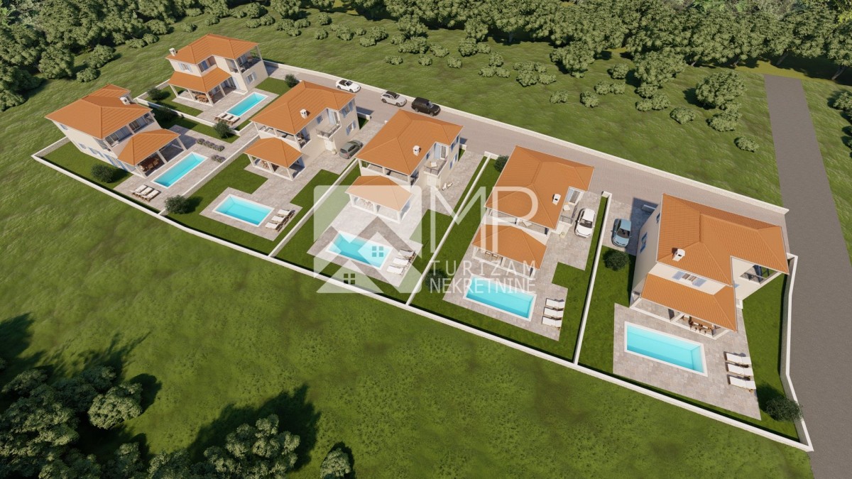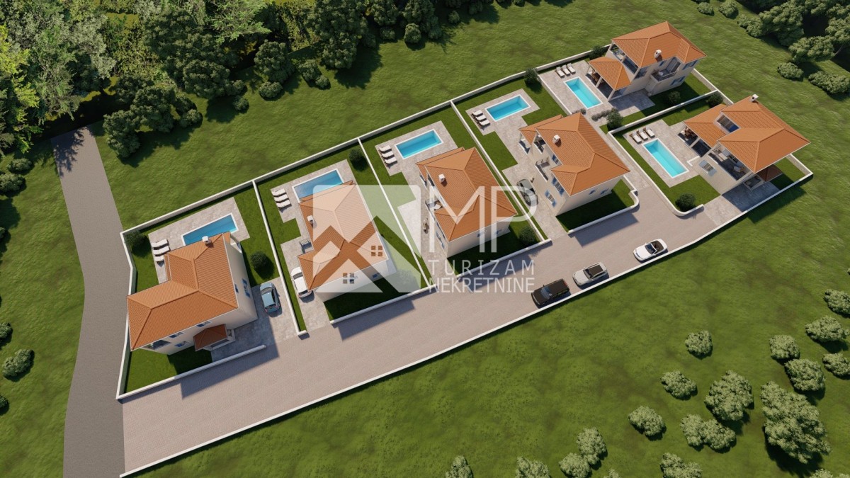 Upravo tu, izdvajamo 6 modernih vila u roh-bau fazi sa postavljenom stolarijom, svaka sa privatnim bazenom, okućnicom i parkirnim mjestima.