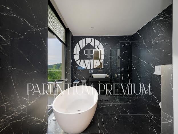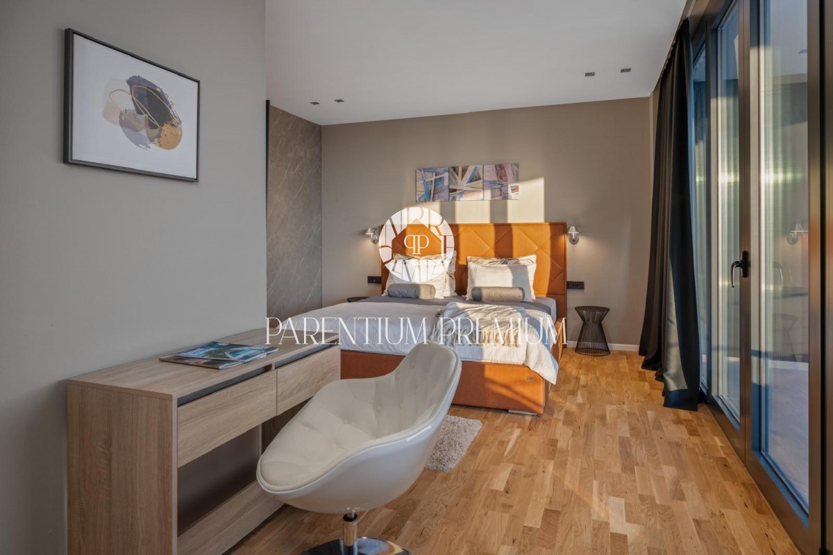 Na prvom katu se nalaze tri prostrane spavaće sobe, svaka sa vlastitom kupaonicom koje imaju podno grijanje i opremljene su vrhunskim materijalima i dizajnom.