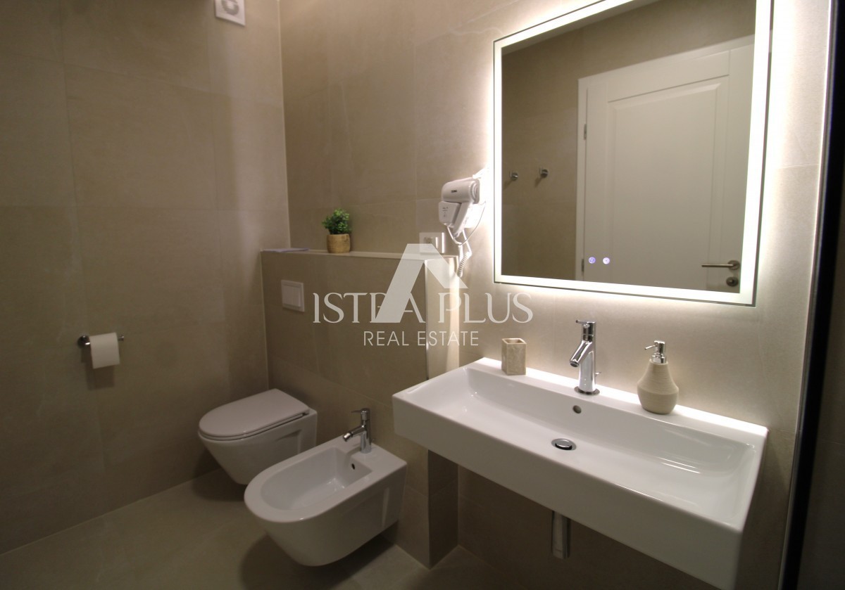 U spavaćim sobama je postavljen visoko kvalitetni parket, a kuhinja i namještaj su rađeni po mjeri.