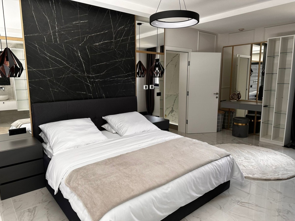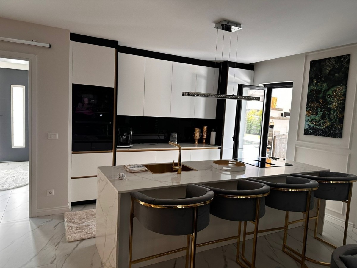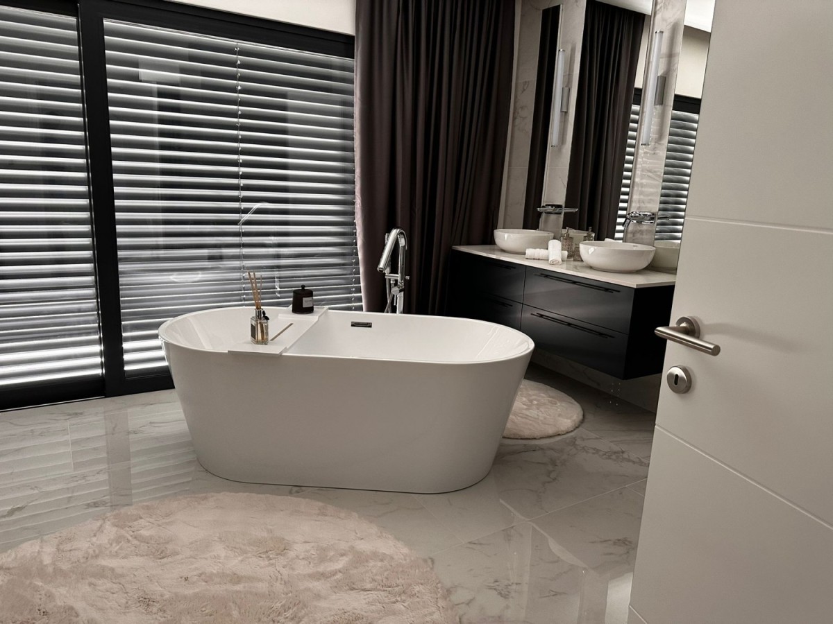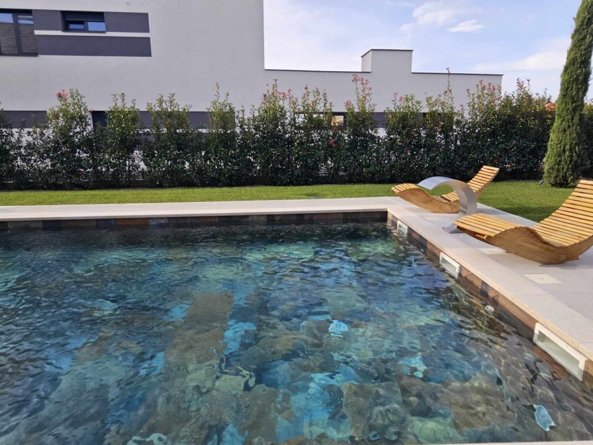POREČ- luksuzna vila na mirnoj lokaciji, ca 2 km od Poreča i mora- Vila ima 360 m2 bruto površine- sastoji se od dnevnog boravka sa kuhinjom i blagovaonom, 4 spavaće sobe, 5 kupatila, wc za goste, ljetne kuhinje i prostrane terase sa pogledom na more- kuća se prodaje kompletno namještena i opremljena- uređena okućnica sa automatskim navodnjavanjem i grijanim bazenom sa slanom vodom od 45 m2- aluminijska stolarija- alarm i video nadzor- grijanje: podno grijanje, dizalica topline.