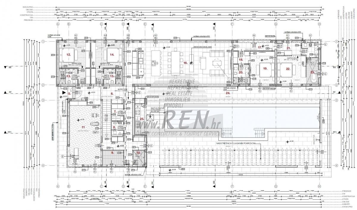 Prema idejnom projektu predviđena je elegantna prizemnica suvremenog dizajna, osmišljena za maksimalnu udobnost i funkcionalnost. Vila uključuje četiri prostrane spavaće sobe, veliki dnevni boravak otvorenog koncepta, prostor predviđen za fitness te luksuzni vanjski bazen površine čak 70 m², koji postaje središnja točka opuštanja i uživanja.