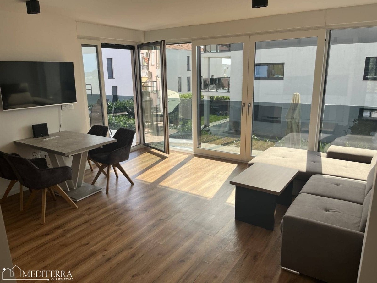 Udaljen samo 1,5 km od centra Novigrada, ovaj moderno uređen stan nudi udobnost, funkcionalnost i potpuno opremljen interijer idealan za dugoročno stanovanje.