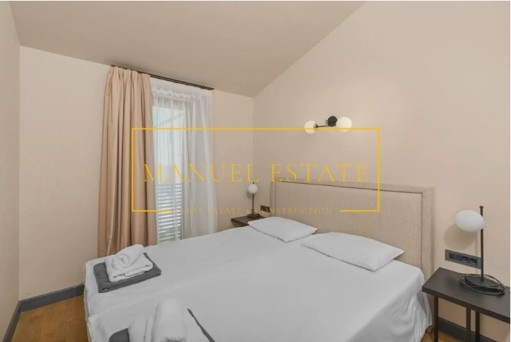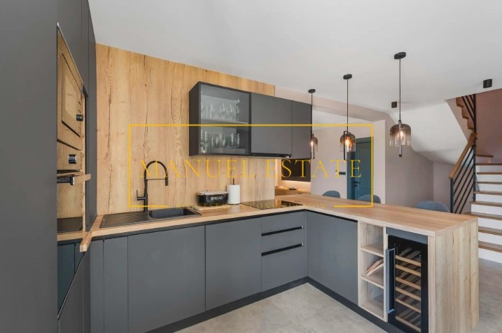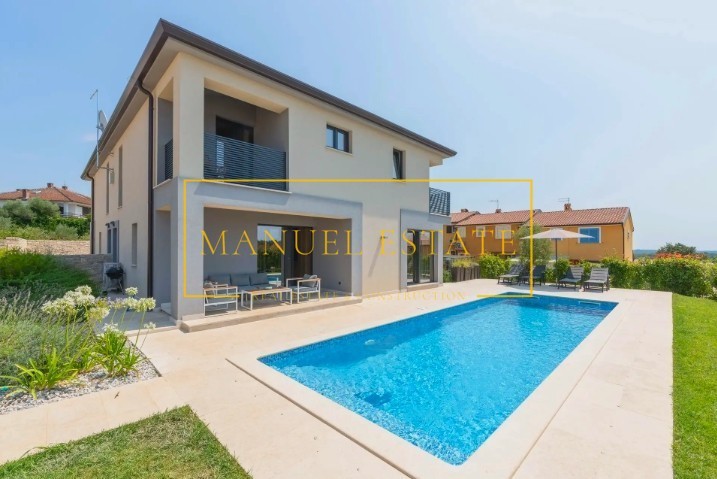 Ova elegantna nekretnina prostire se na dvije etaže, s ukupno 140 m² stambene površine, dok okućnica obuhvaća 350 m². U prizemlju se nalazi prostrani otvoreni dnevni boravak koji povezuje moderno opremljenu kuhinju i blagovaonicu, a velike staklene stijene omogućuju izlaz na terasu i bazen. Dodatno, u prizemlju se nalaze spremište, vešeraj i kupaonica. Unutarnje stepenice vode na prvi kat, gdje su smještene tri spavaće sobe. Master spavaća soba ima vlastitu kupaonicu i izlaz na privatnu terasu, dok druge dvije sobe dijele dodatnu kupaonicu.