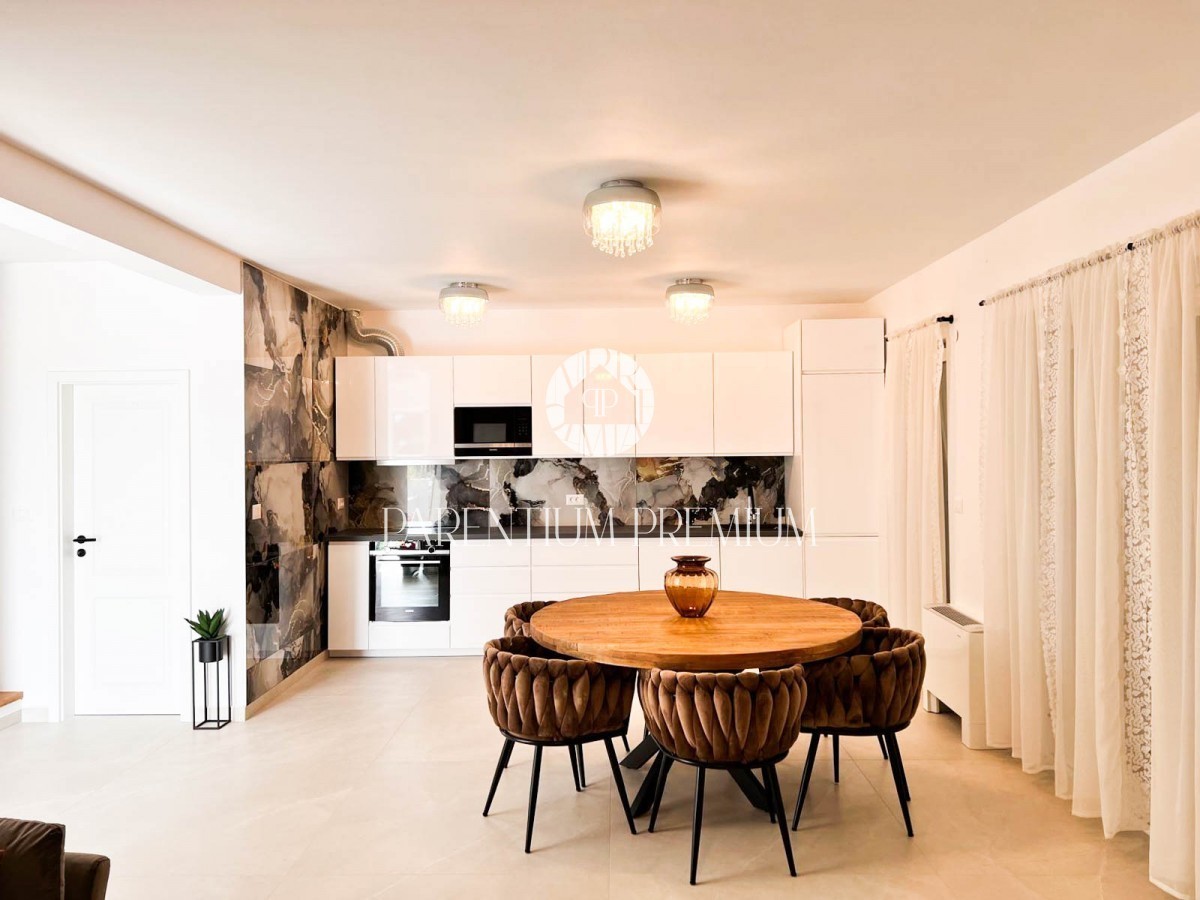 Na traženoj lokaciji u blizini grada Poreča smjestila se ova moderna kuća potpuno namještena kvalitetnim namještajem ukupne površine od 134m2.