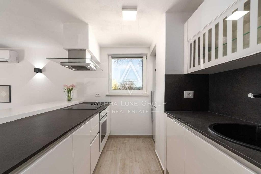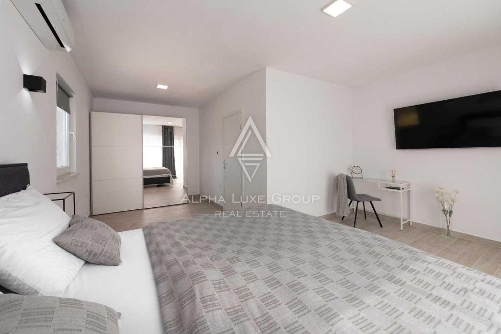 Vila se prostire na dva klimatizirana kata plus potkrovlje, svaki dizajniran za udobnost i luksuz. Pored klimatizacije, ugrađeno je i električno podno grijanje. U prizemlju se nalazi kupaonica, potpuno opremljena kuhinja s blagovaonicom i suvremeno uređen dnevni boravak s izravnim pristupom na terasu. Na prvom katu nalazi se spavaća soba i kupaonica, dok je potkrovlje pretvoreno u dodatnu ugodnu spavaću sobu.